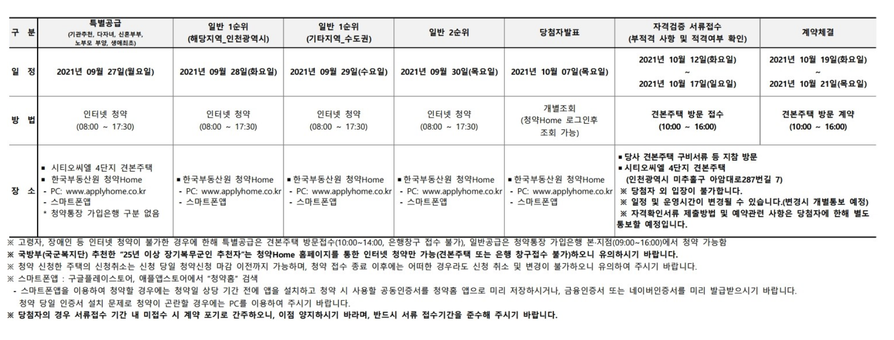 ■ 본 아파트는 최초 입주자모집공고일(2021.09.09) 현재 인천광역시 및 수도권(서울특별시, 경기도)에 거주(주민등록표등본 기준)하는 만19세 이상인 자 또는 세대주인 미성년자(자녀양육, 형제자매부양)[국내에서 거주하는 재외동포(재외국민, 외국국적 동포) 및 외국인 포함]의 경우 청약이 가능합니다. 다만 청약 신청자 중 같은 순위 내에 경쟁이 있을 경우 해당 주택건설지역인 인천광역시 거주자가 우선합니다.