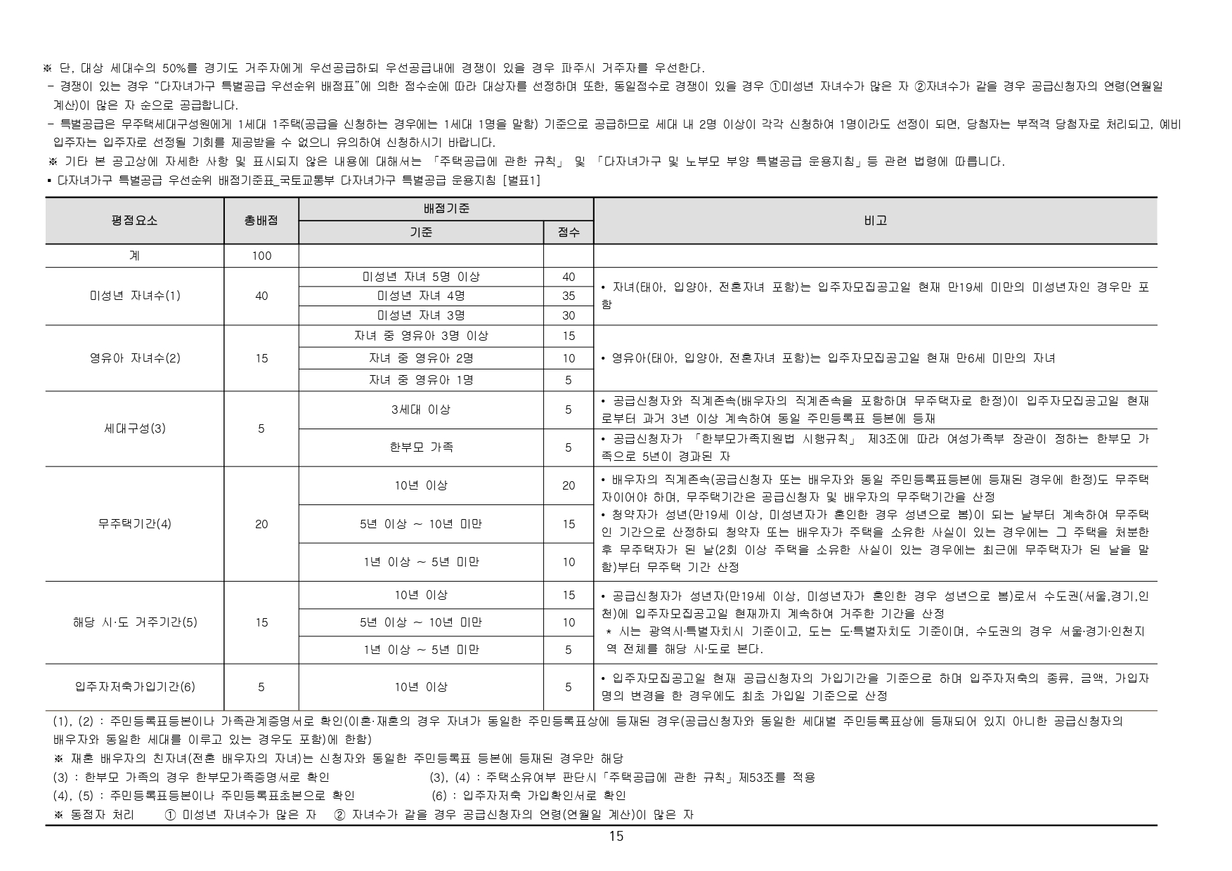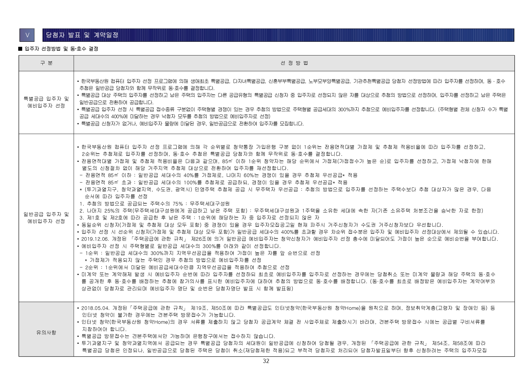 ■「주택공급에 관한 규칙」 제28조에 의거 청약 접수 시 주택형 전용면적 85㎡ 이하 주택은 일반공급 세대수의 40%를 가점제로 선정하며 나머지 60%는 추첨제로 선정 합니다.