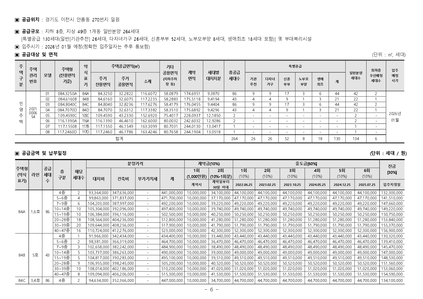 이천 빌리브 어바인시티 1BL / 2BL 아파트 입주자 모집공고, 평형별 타입