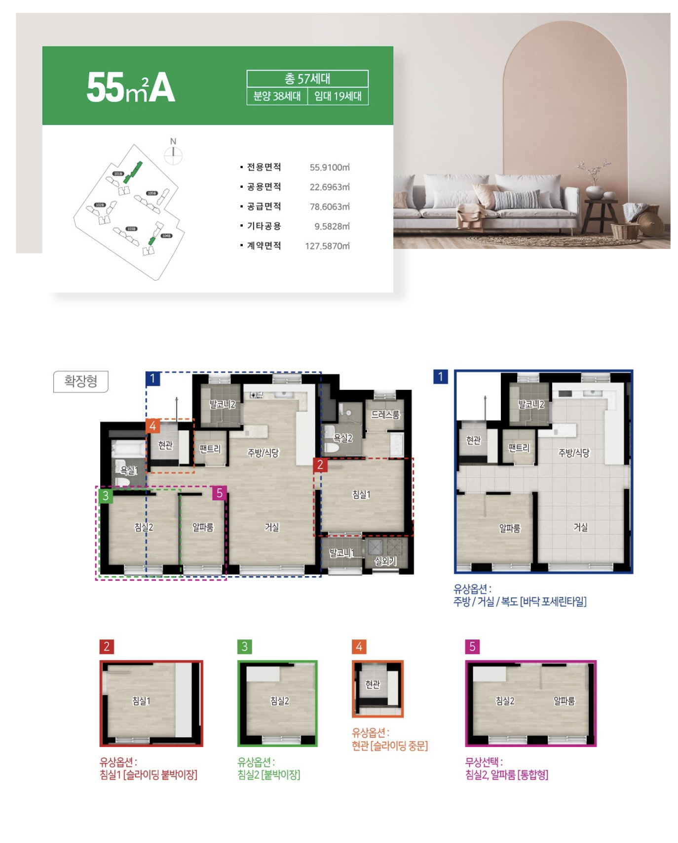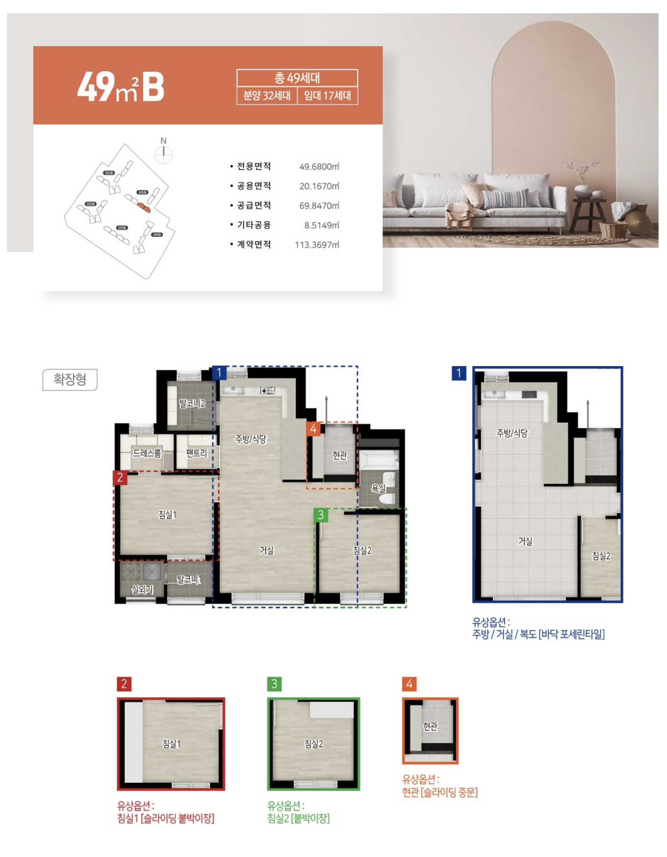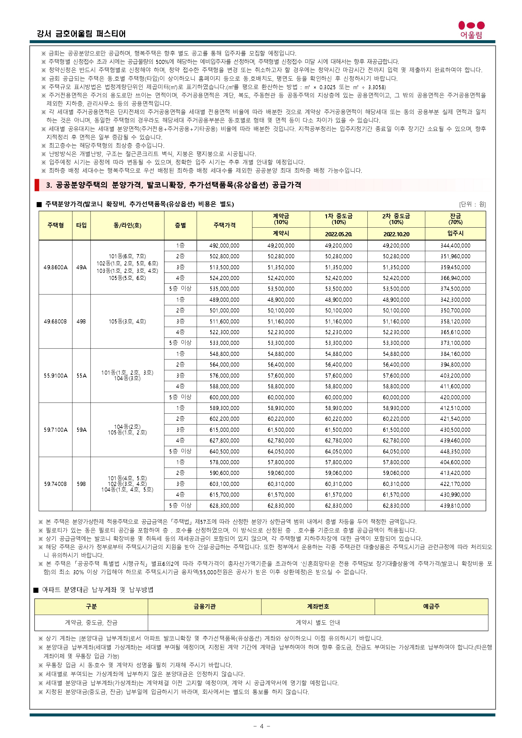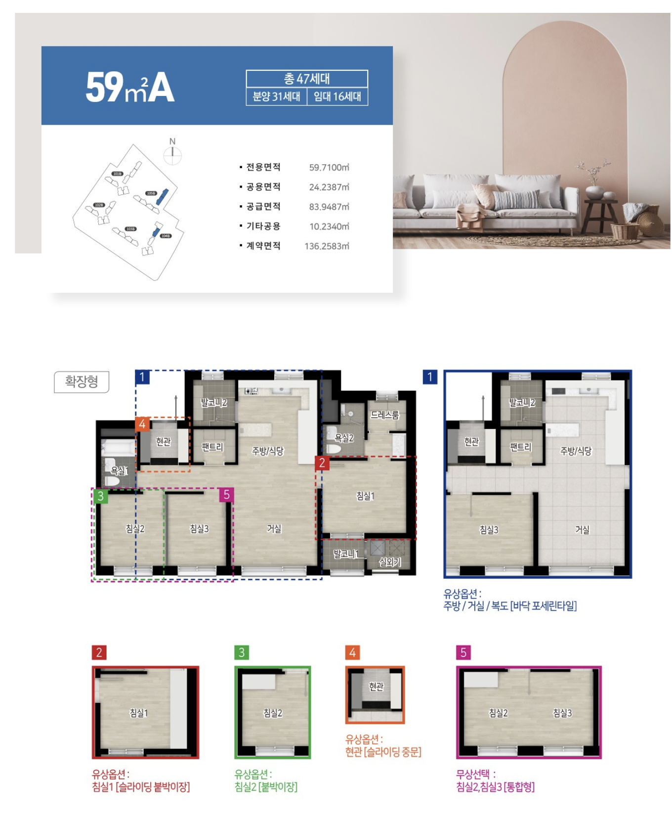 (전용면적 49m²A 147세대, 49m²B 32세대, 55m²A 38세대, 59m²A 31세대, 59m²B 100세대)