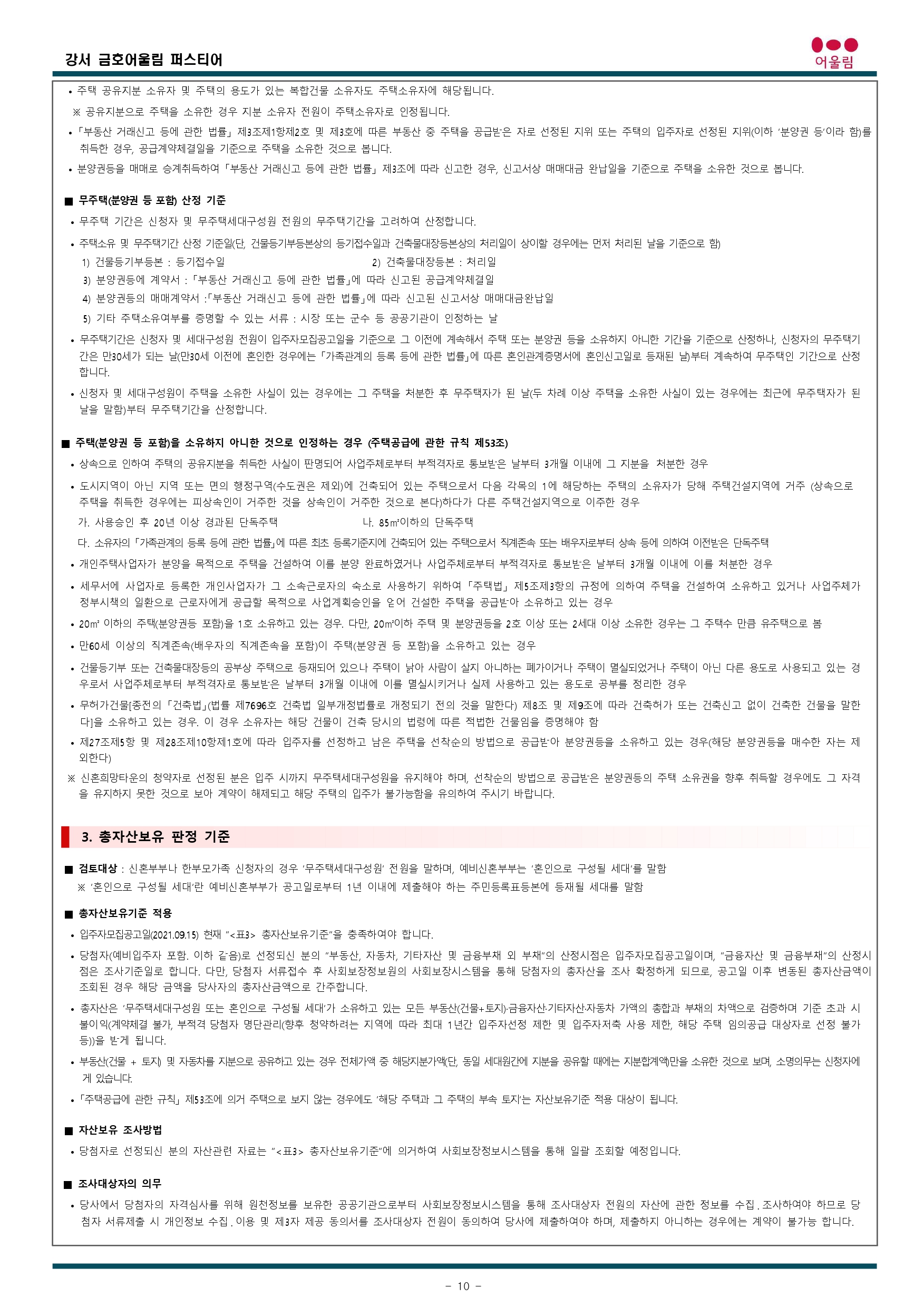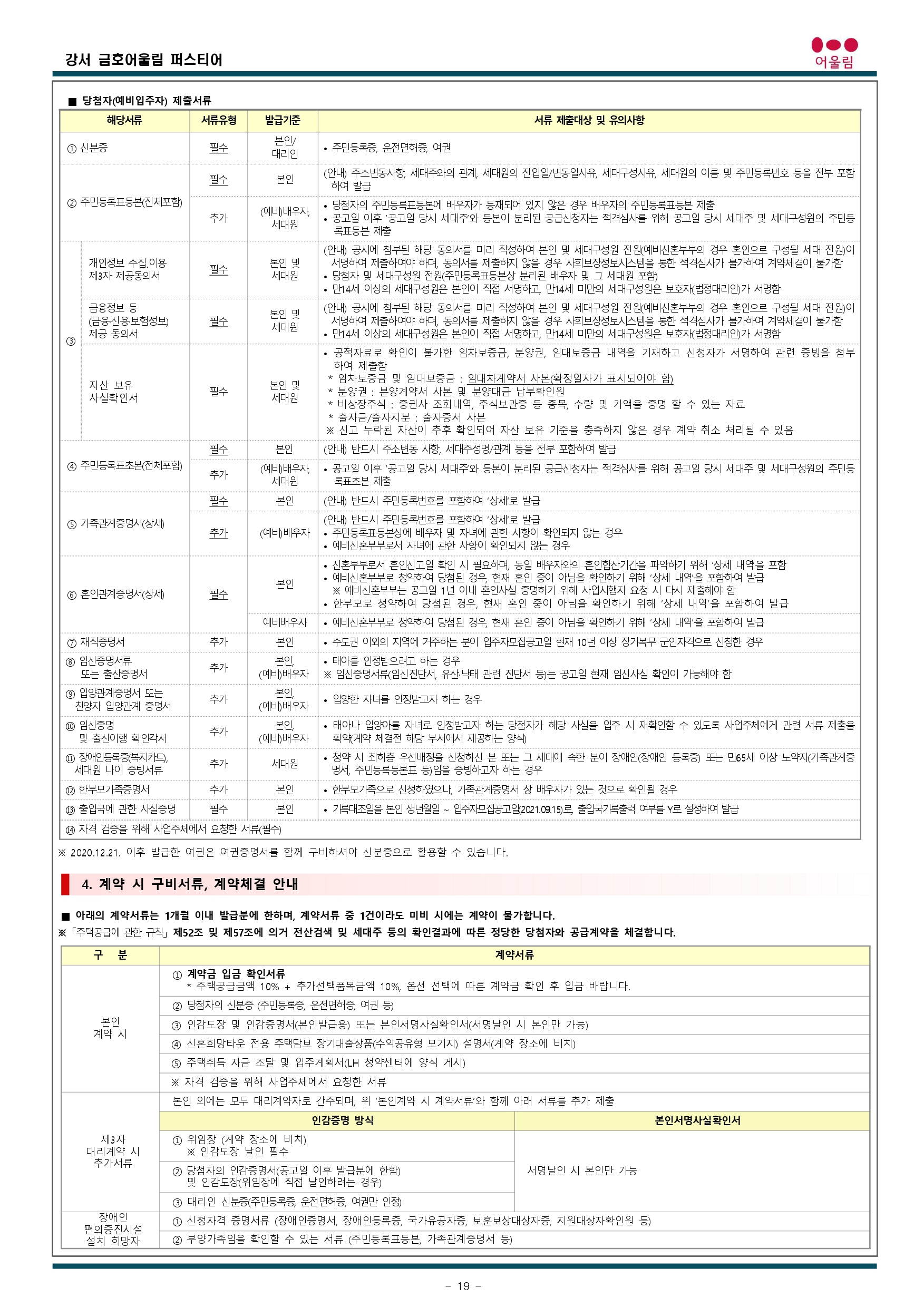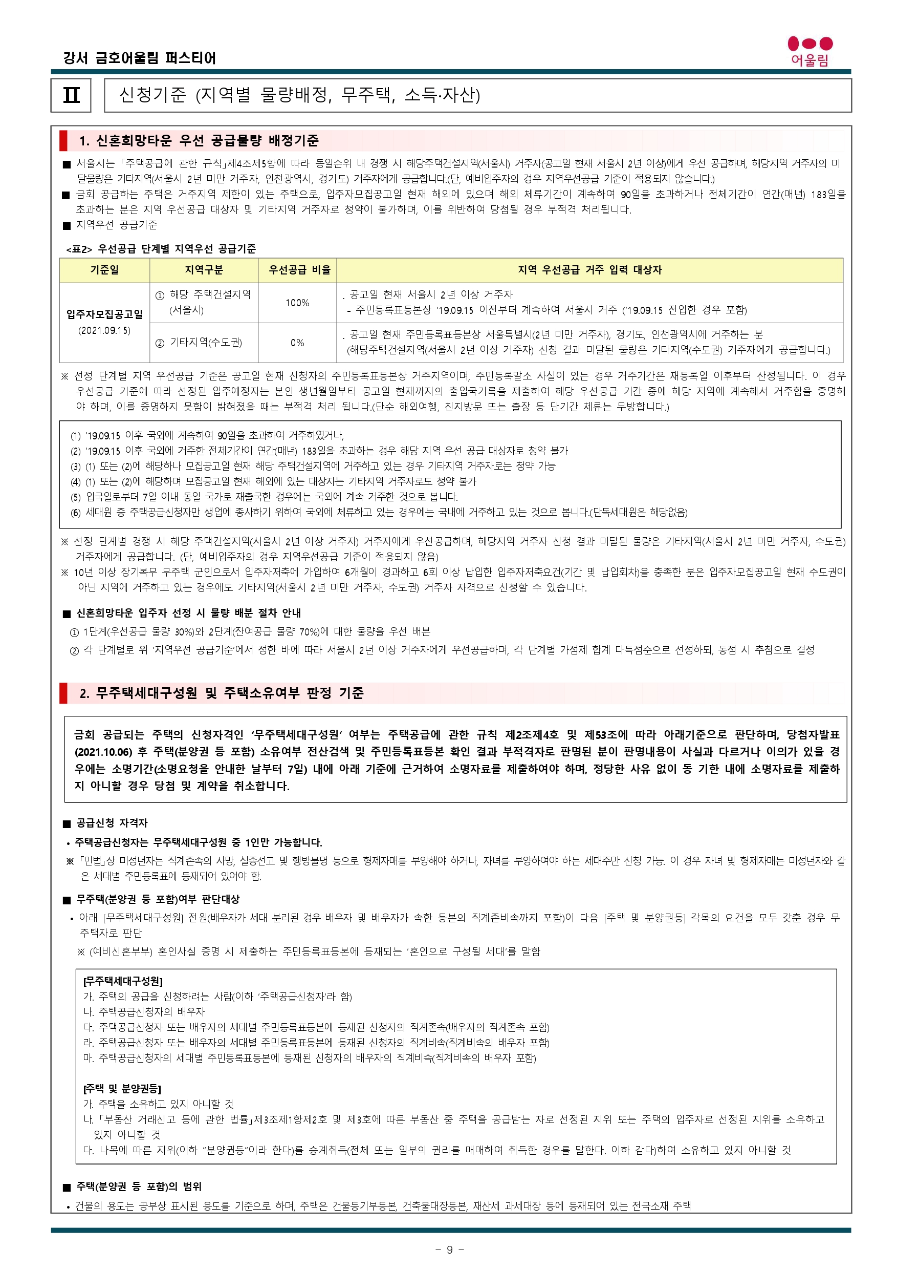 ■ 이 주택의 입주자모집공고일은 2021.09.15(수)이며, 이는 청약자격(청약신청, 자격조건의 기간, 나이, 세대구성원, 지역우선, 주택소유, 재당첨제한 등)의 판단기준일이 됩니다. 이 주택의 주택관리번호는 2021000650이며, 공고문은 LH 청약센터 홈페이지(apply.lh.or.kr) 및 모바일앱, 강서 금호어울림 퍼스티어 홈페이지(www.gangseokhapt.com)에서도 확인하실 수 있습니다.
