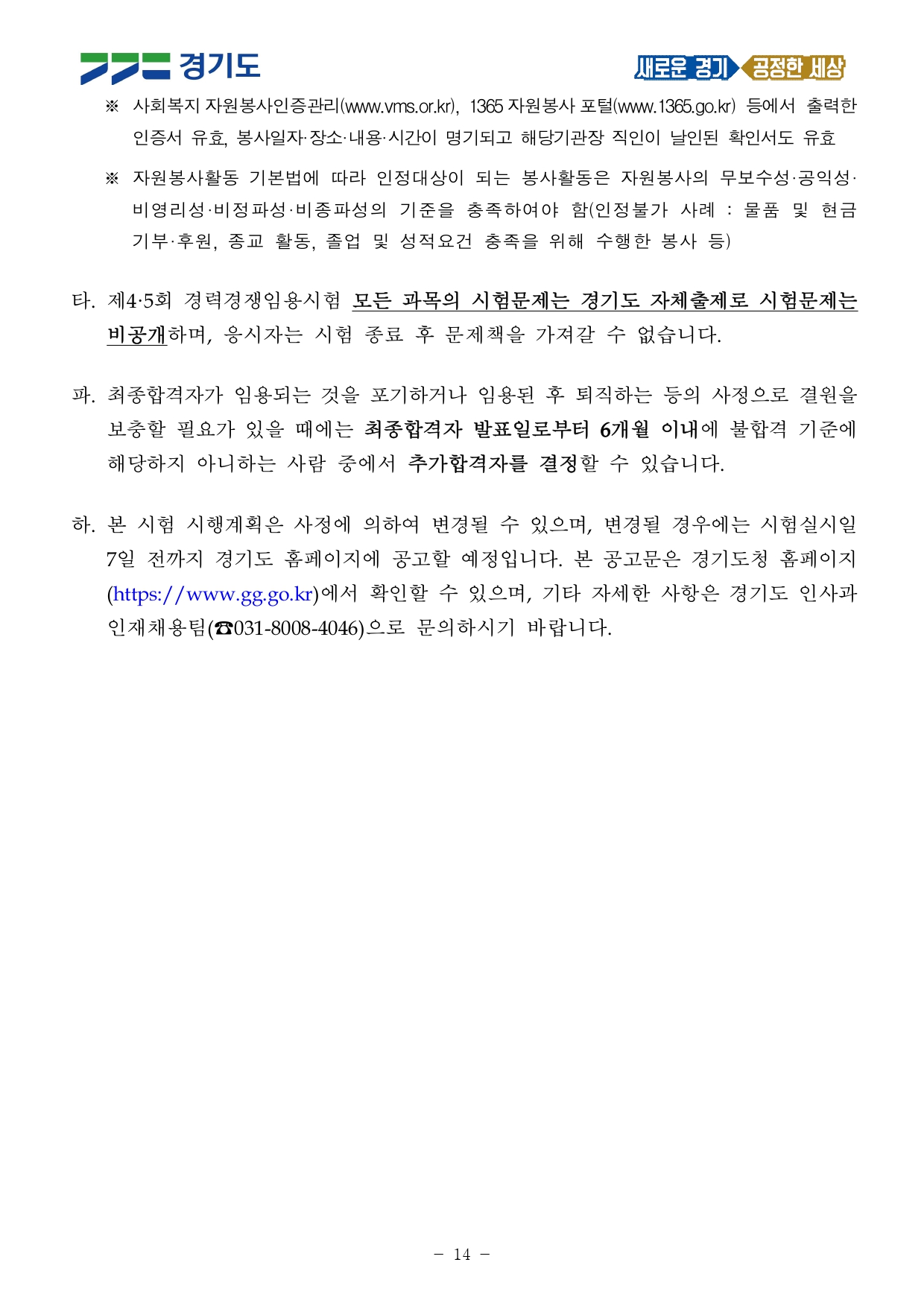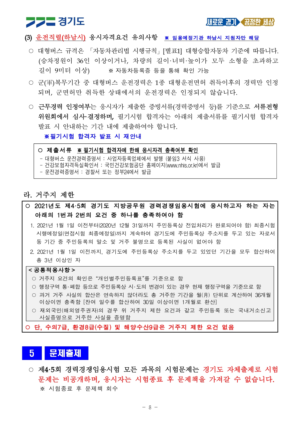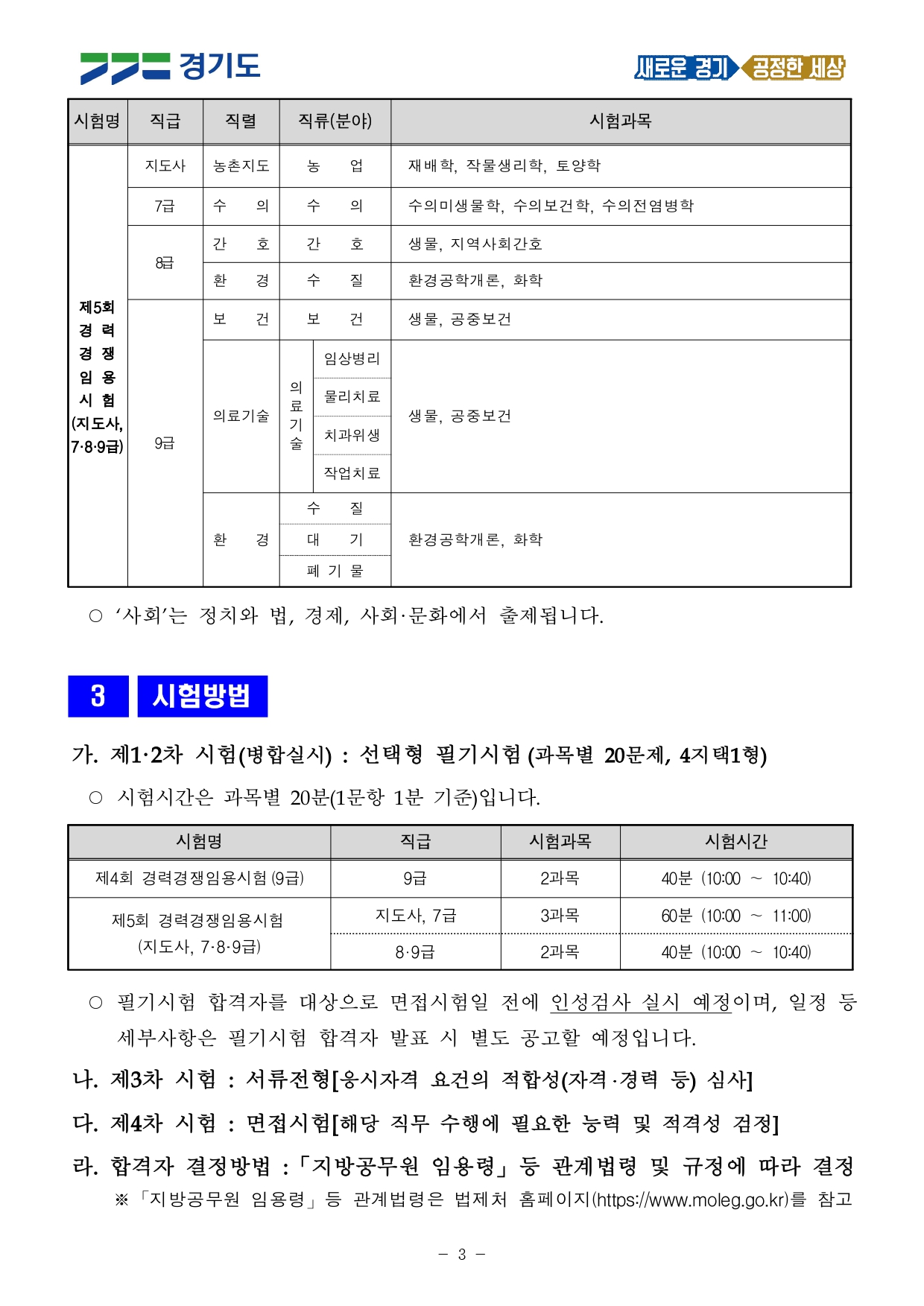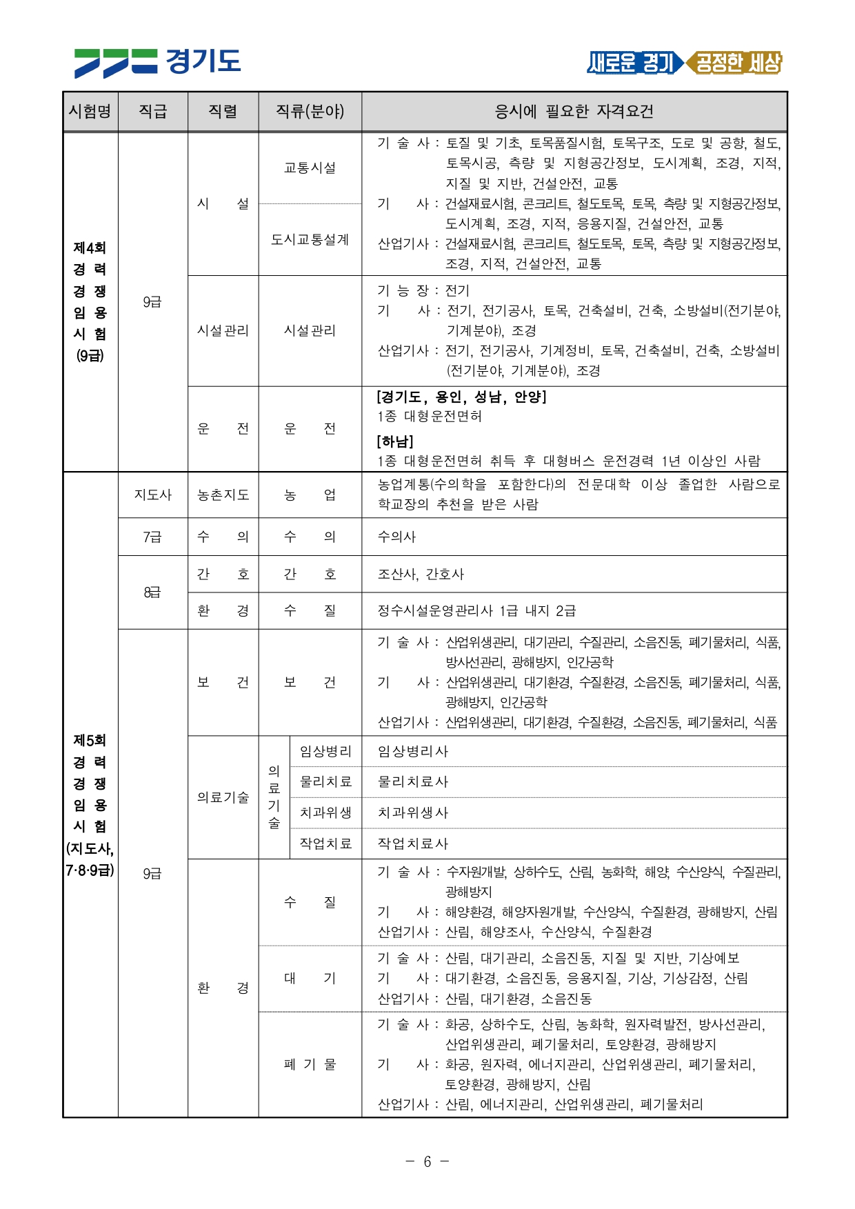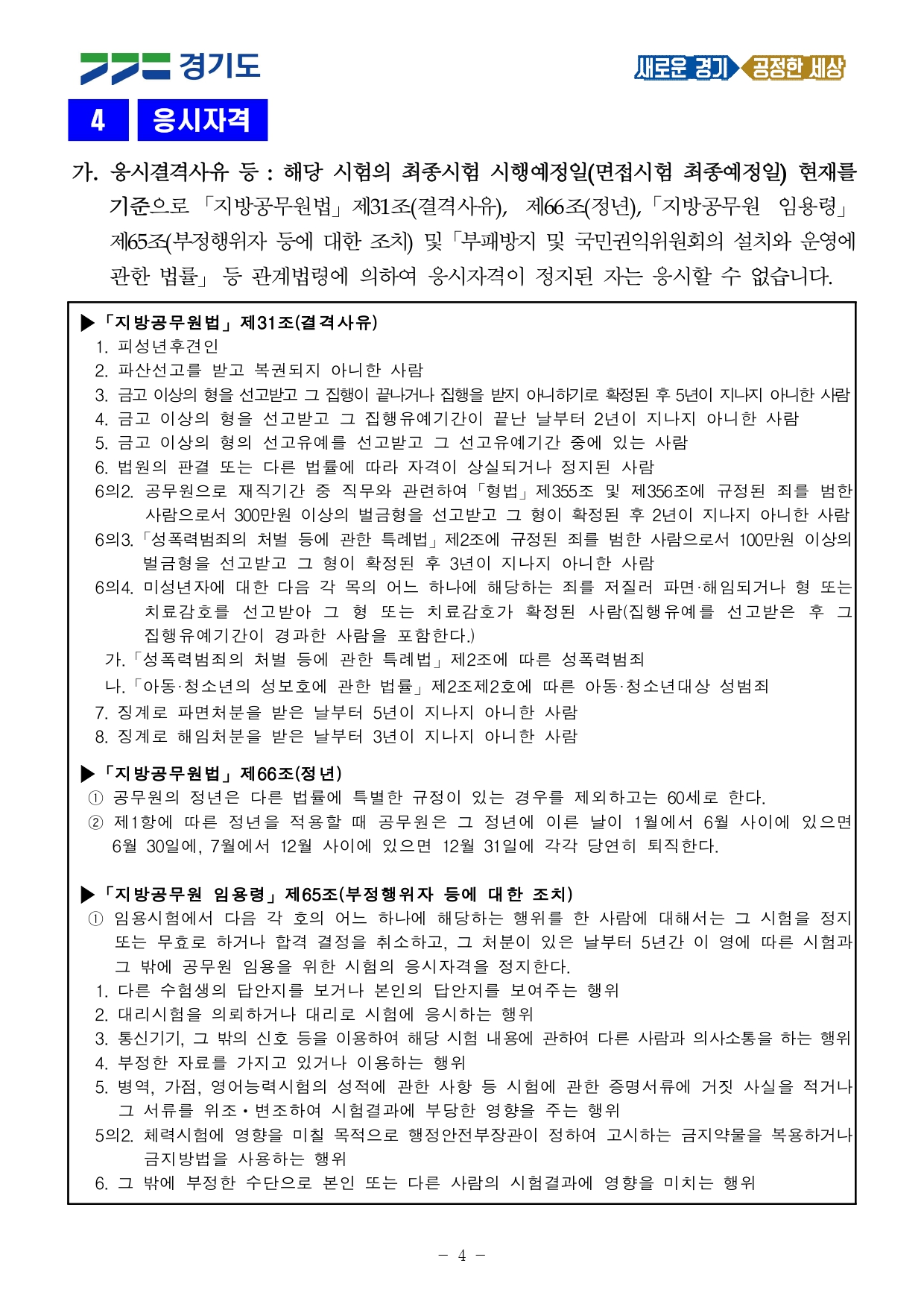 2021년도 제4회(9급) 및 제5회(지도사, 7급, 8급, 9급) 경기도 지방공무원 경력경쟁 임용시험 시행계획을 다음과 같이 공고합니다.