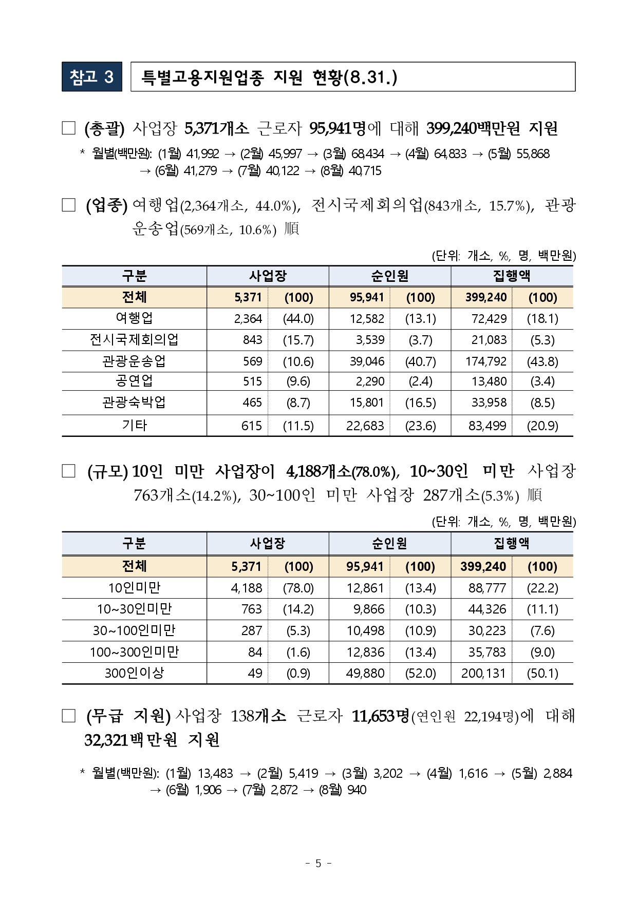 이에 따라, 항공업.여행업 등 특별고용지원 업종 사업장들은 기존 지원 일수(270일)에 30일을 추가하여 2021년에 최대 300일간 유급휴업·휴직 지원을 받을 수 있게 되었다.