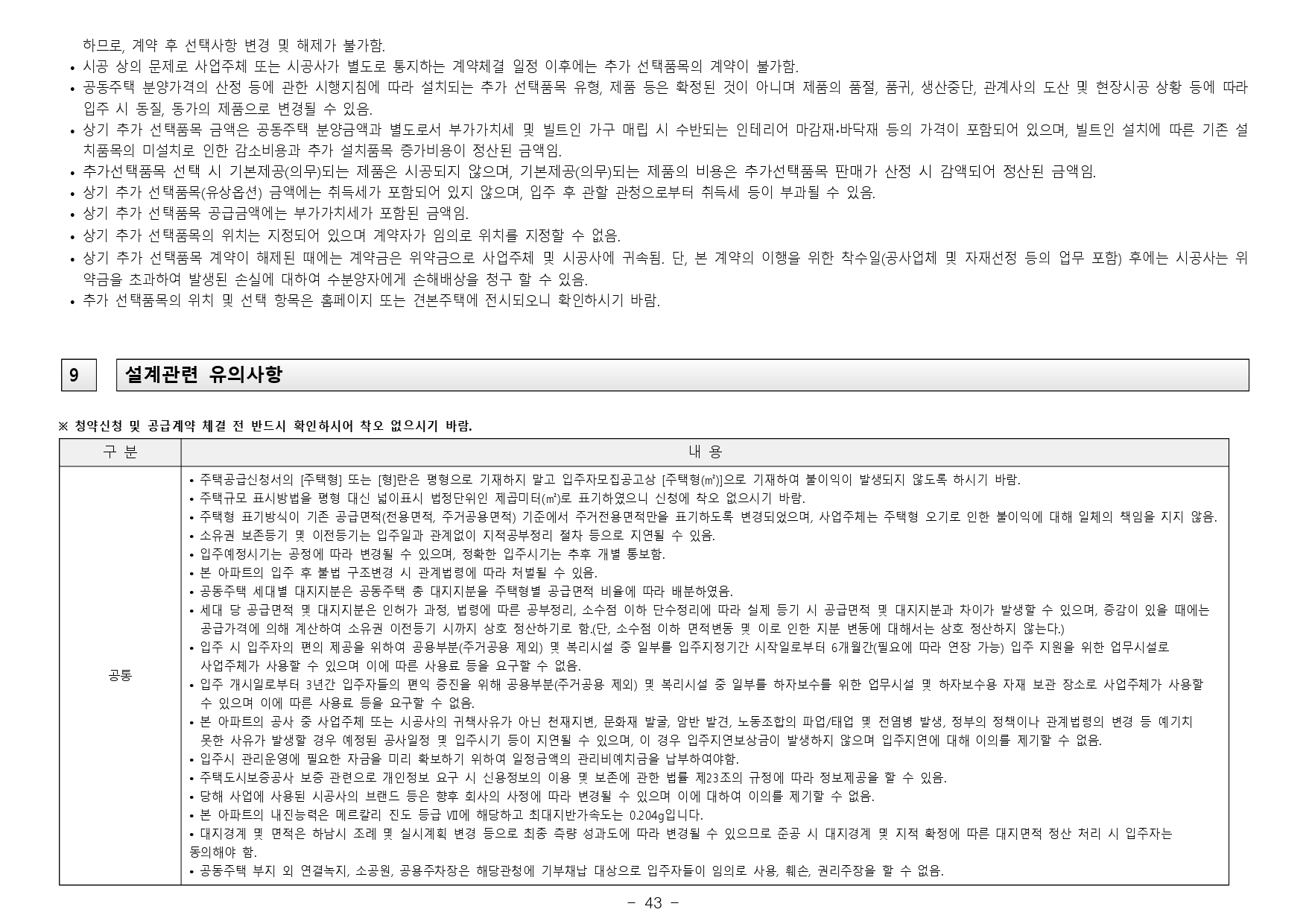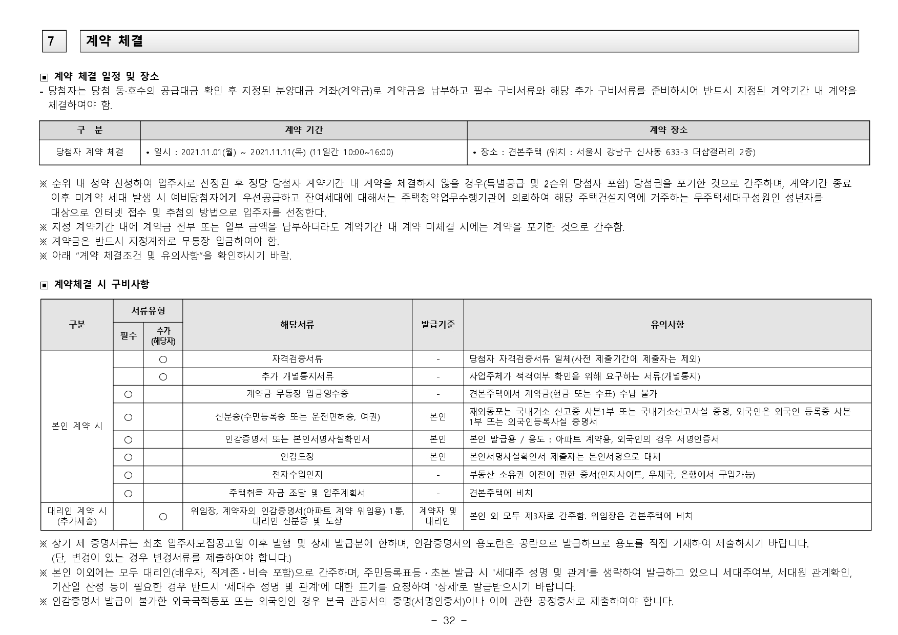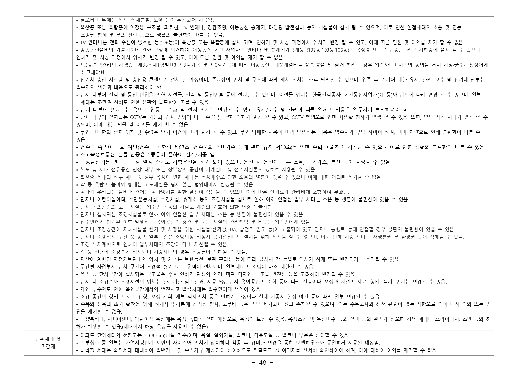 - 거주의무기간 : 본 아파트는「주택법」제57조의2 제1항 및「주택법 시행령」제60조의2 제1항에 의거하여 수도권에서 분양하는 분양가 상한제 적용 주택으로써 주택법령상 해당 주택의 최초 입주가능일부터 2년동안 계속하여 해당주택에 거주하여야 합니다. (다만, 해외 체류 등 대통령령으로 정하는 부득이한 사유가 있는 경우 그 기간은 해당 주택에 거주한 것으로 봅니다.)