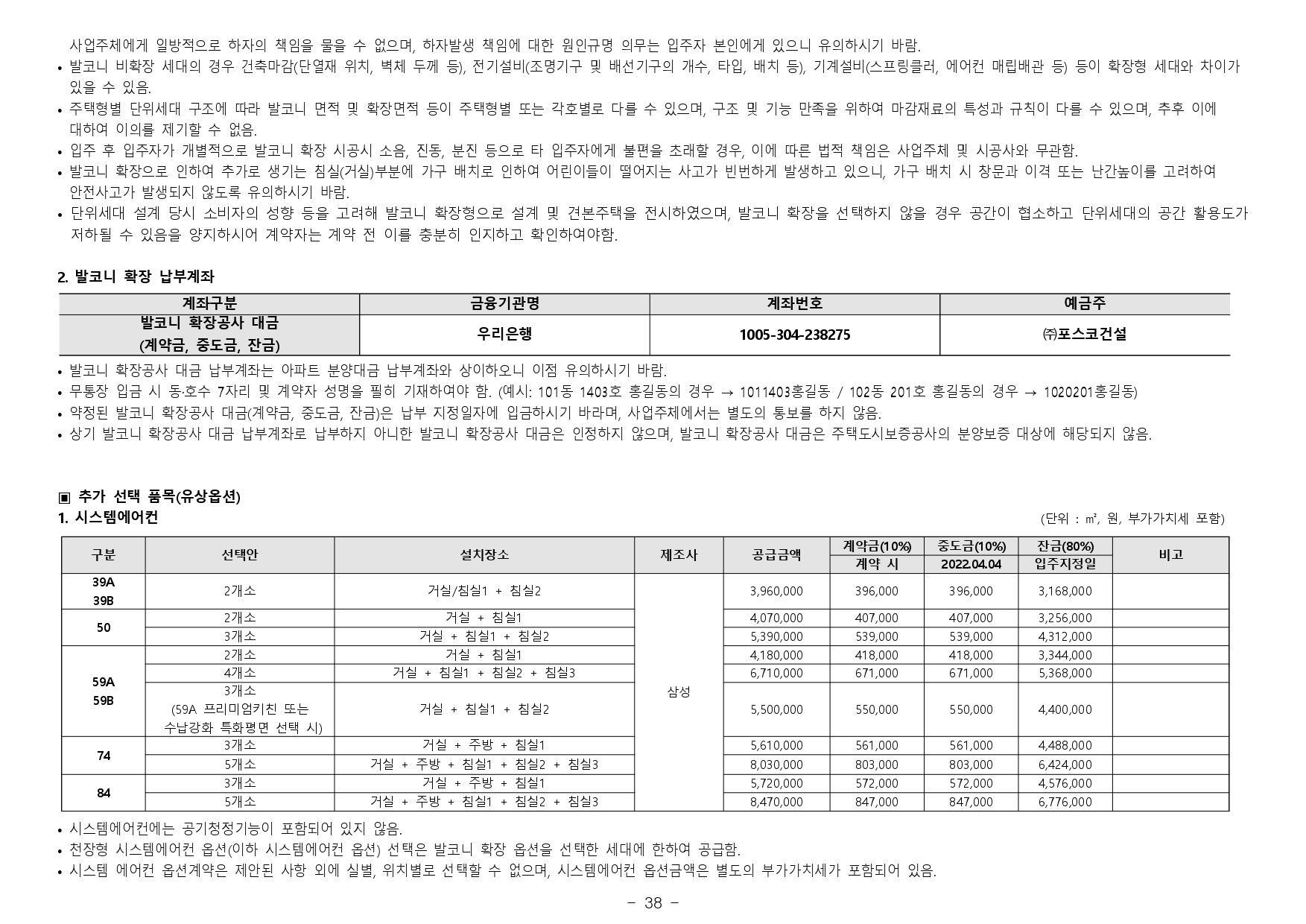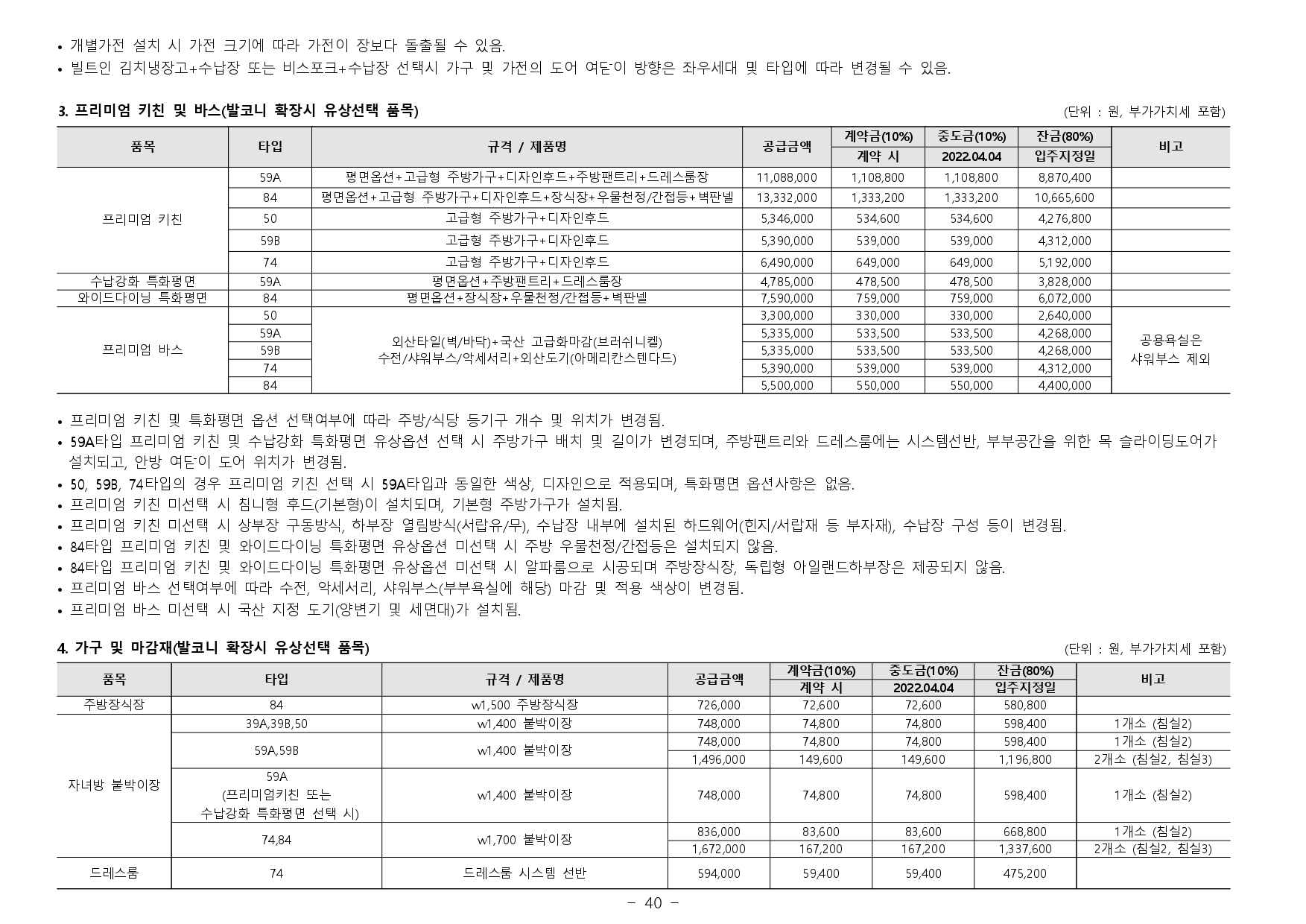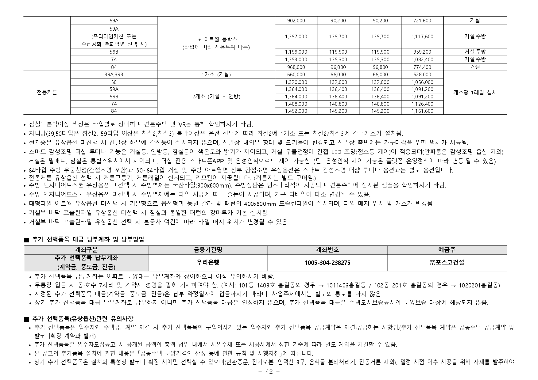 - 거주의무기간 : 본 아파트는「주택법」제57조의2 제1항 및「주택법 시행령」제60조의2 제1항에 의거하여 수도권에서 분양하는 분양가 상한제 적용 주택으로써 주택법령상 해당 주택의 최초 입주가능일부터 2년동안 계속하여 해당주택에 거주하여야 합니다. (다만, 해외 체류 등 대통령령으로 정하는 부득이한 사유가 있는 경우 그 기간은 해당 주택에 거주한 것으로 봅니다.)