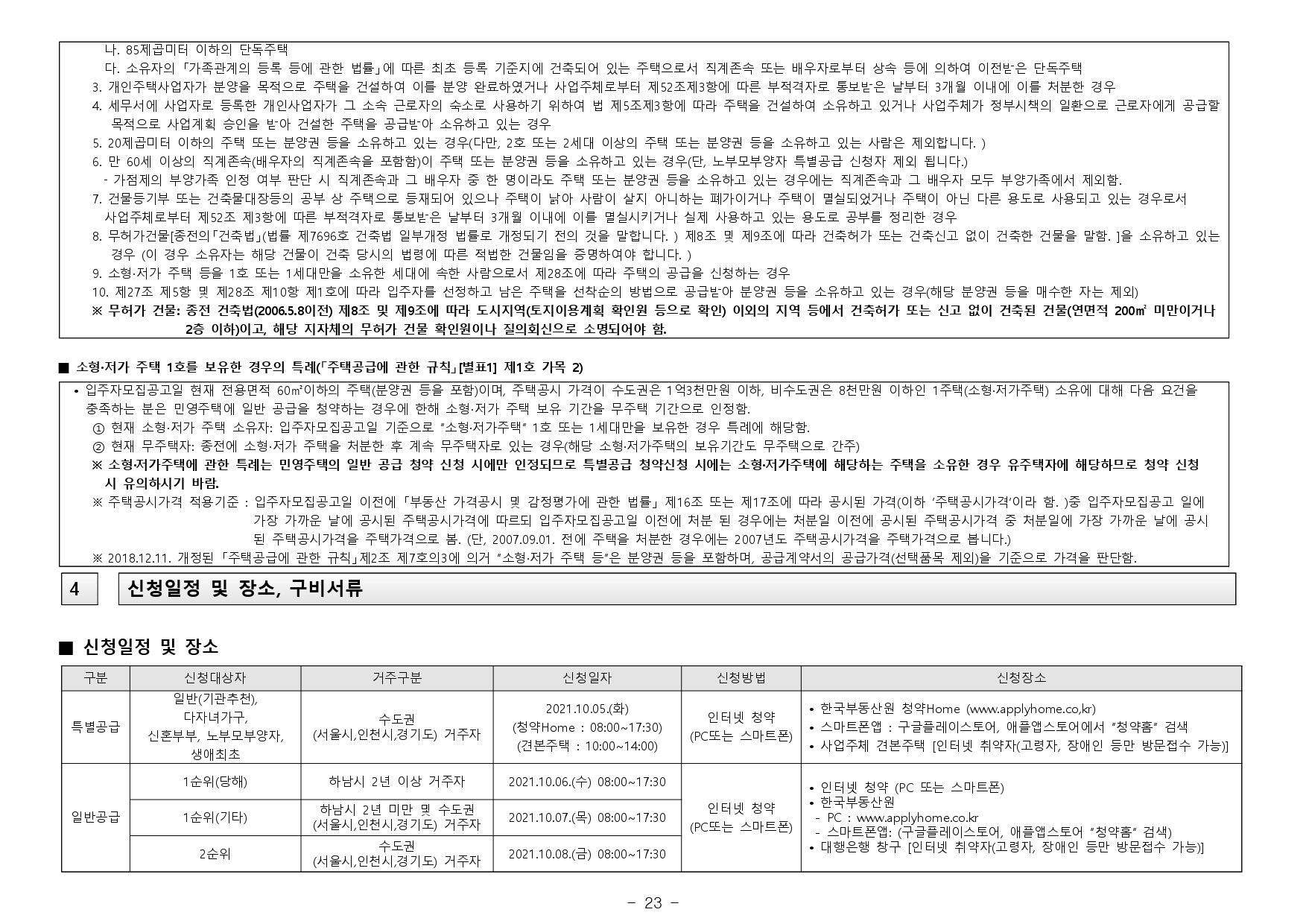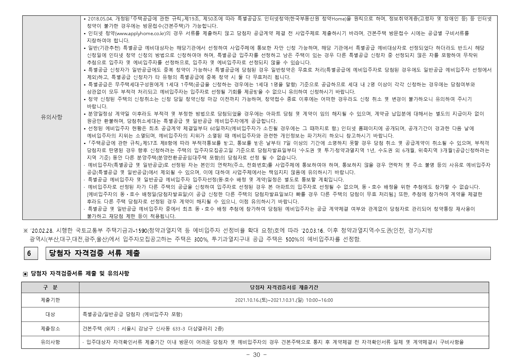 ※ 「주택공급에 관한 규칙」제 54조 재당첨 제한 : 「주택공급에 관한 규칙」제3조 제2항 제1호·제2호·제4호·제6호, 같은 항 제7호 가목(투기과열지구에서 공급되는 주택으로 한정한다) 및 같은 항 제8호의 주택, 제47조에 따라 이전기관 종사자 등에 특별공 급되는 주택, 분양가상한제 적용주택, 분양전환공공임대주택, 토지임대주택, 투기과열지구에서 공급되는 주택, 청약과열지역에서 공급되는 주택