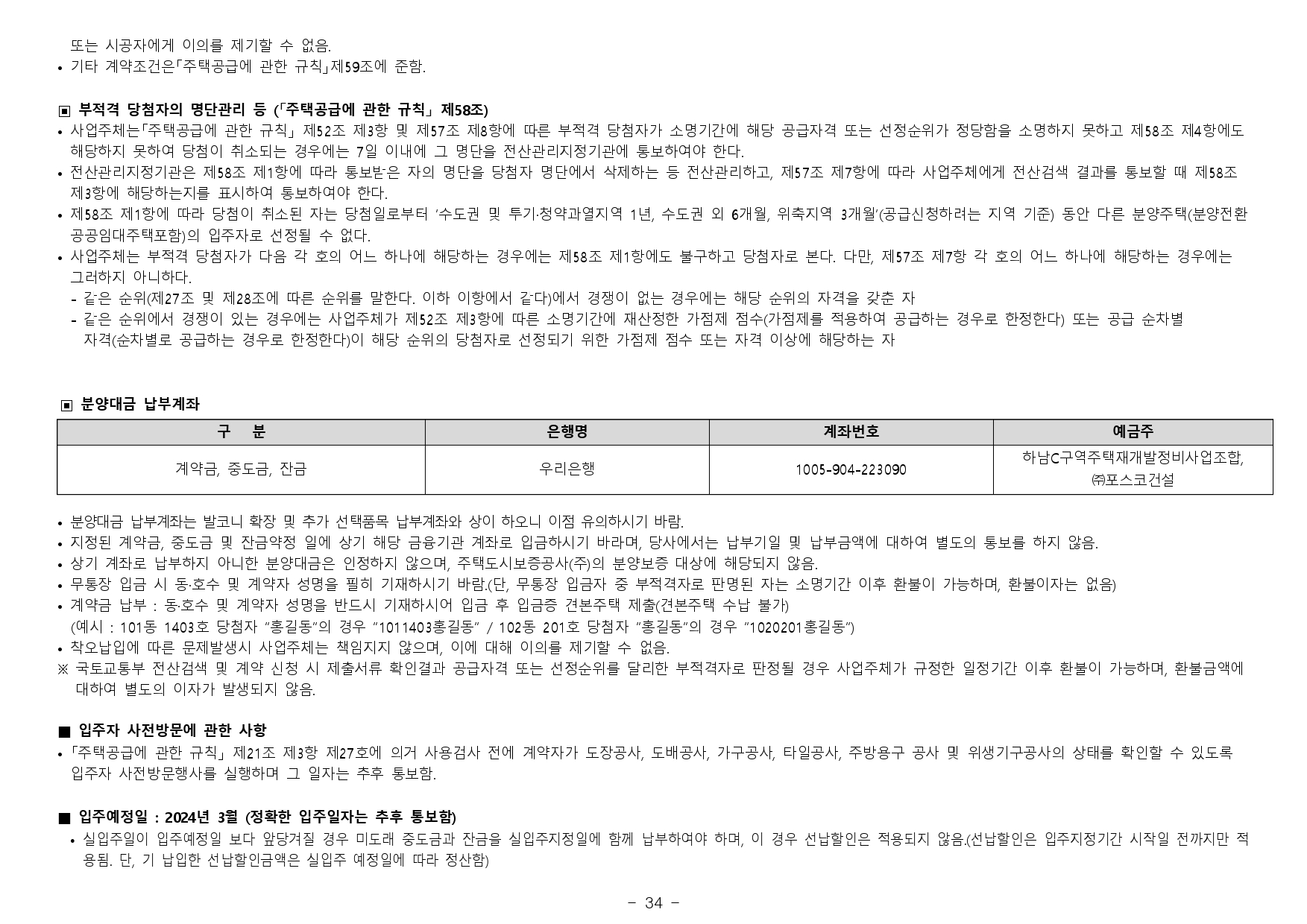 ※ 재당첨 제한 대상자의 청약 제한 : 재당첨 제한 대상주택에 당첨된 자 및 당첨된 자의 세대[주택공급에 관한 규칙 제47조의3(불법전매 등으로 계약 취소된 주택의 재공급)에 따른 당첨자의 경우 주택공 급신청자 및 그 배우자만 해당함]에 속하여 재당첨 제한 기간에 있는 분은 본 아파트 청약이 불가하므로 유의하시기 바랍니다.