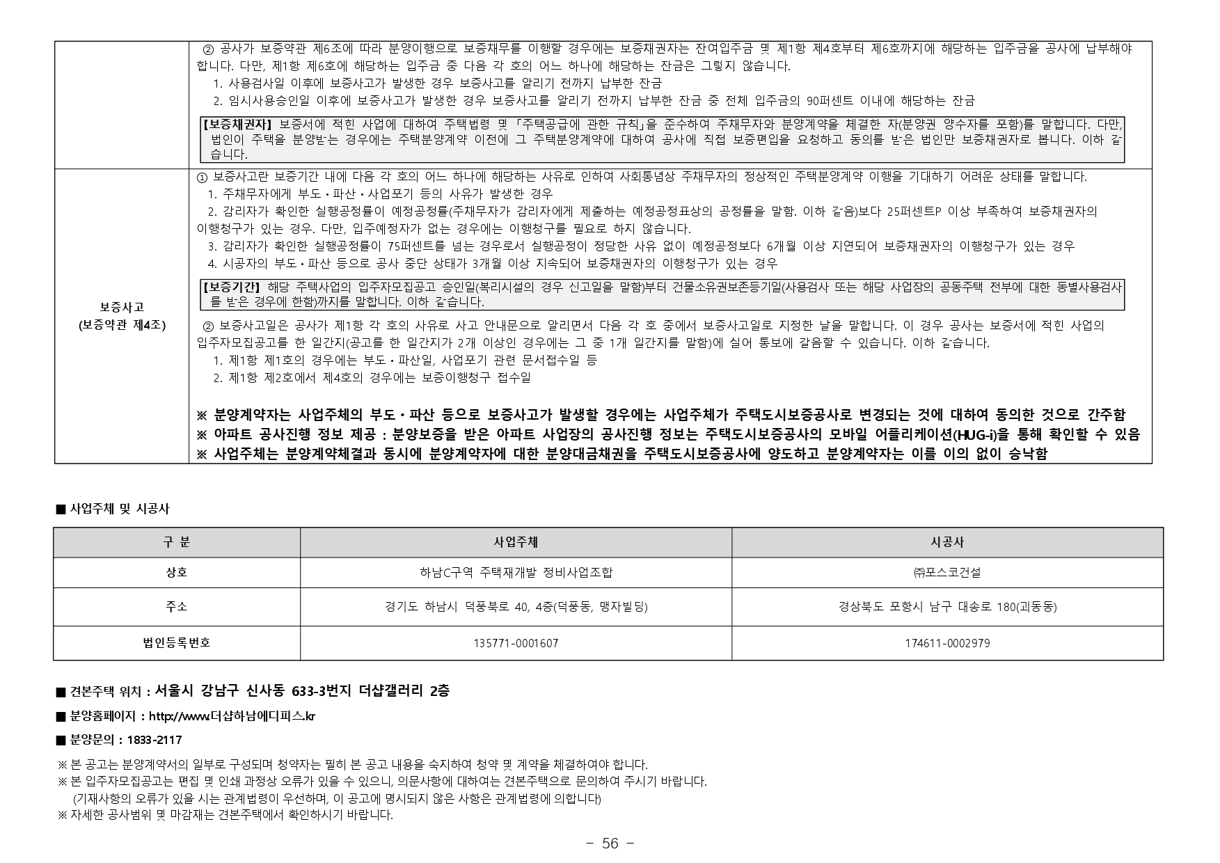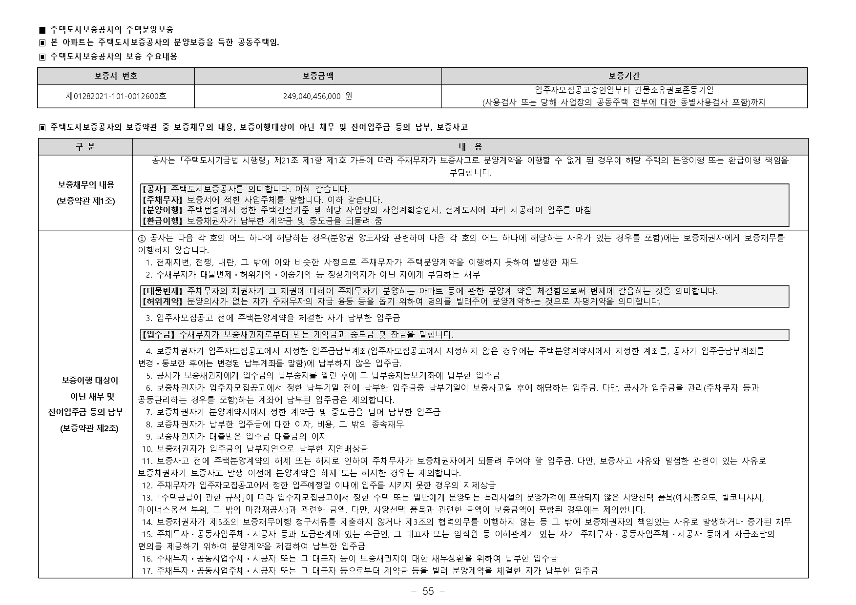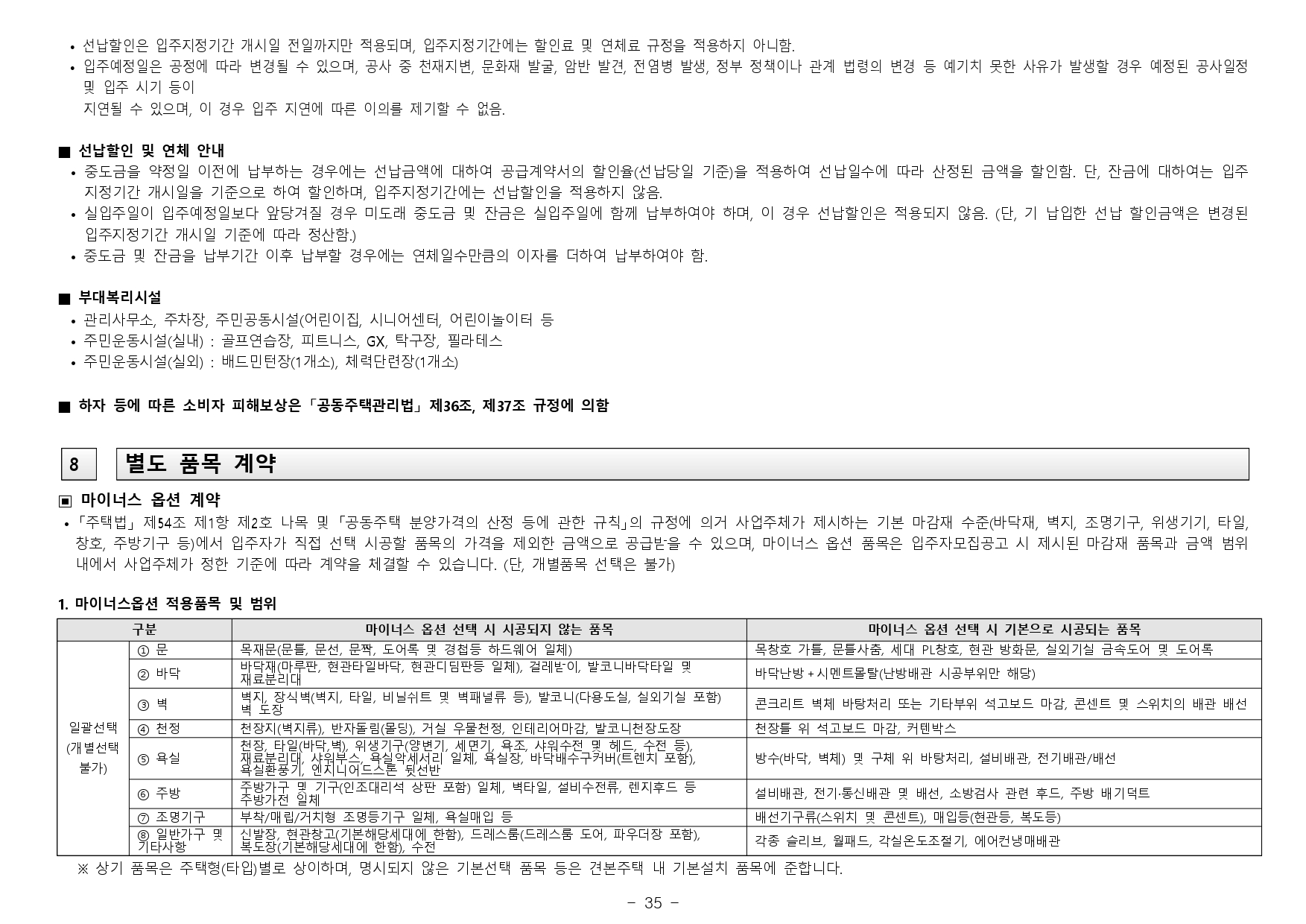 - 거주의무기간 : 본 아파트는「주택법」제57조의2 제1항 및「주택법 시행령」제60조의2 제1항에 의거하여 수도권에서 분양하는 분양가 상한제 적용 주택으로써 주택법령상 해당 주택의 최초 입주가능일부터 2년동안 계속하여 해당주택에 거주하여야 합니다. (다만, 해외 체류 등 대통령령으로 정하는 부득이한 사유가 있는 경우 그 기간은 해당 주택에 거주한 것으로 봅니다.)