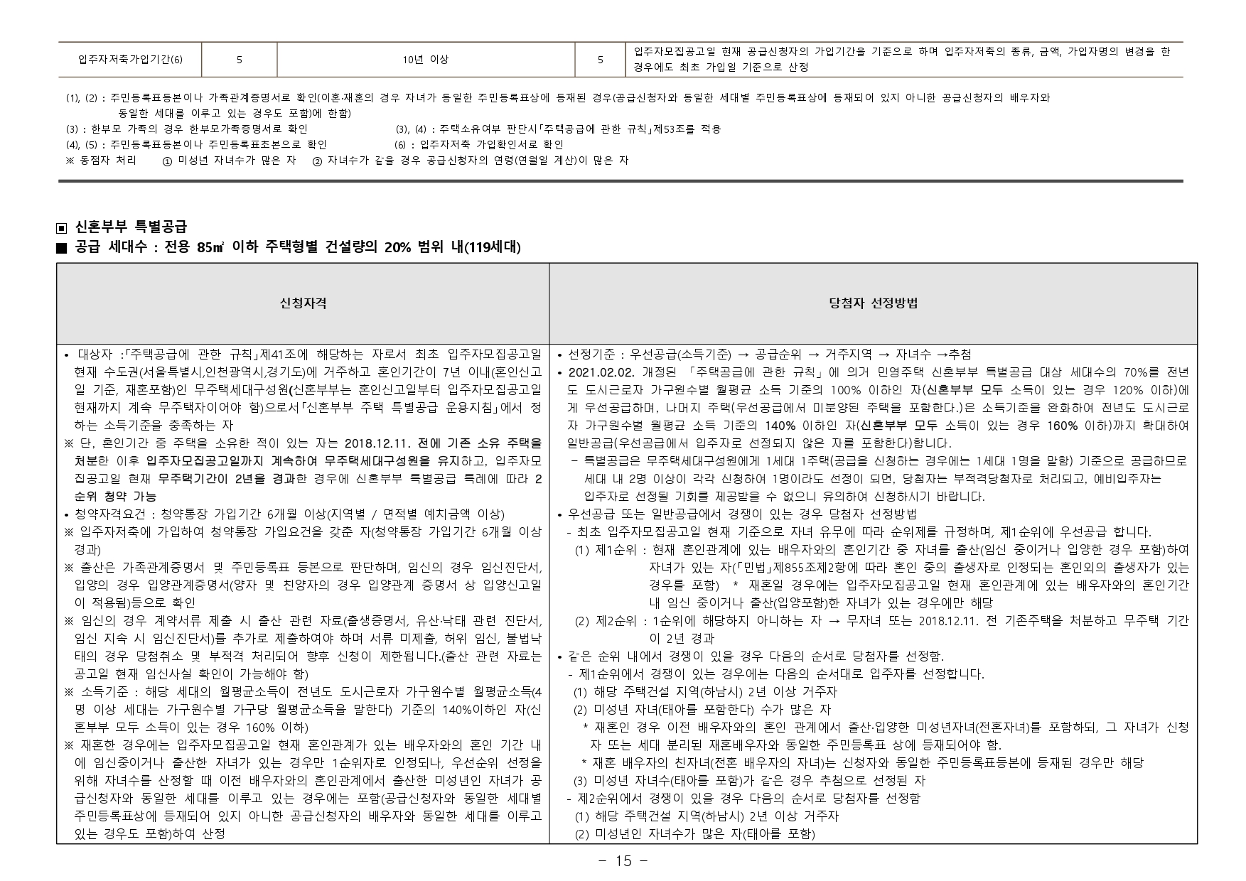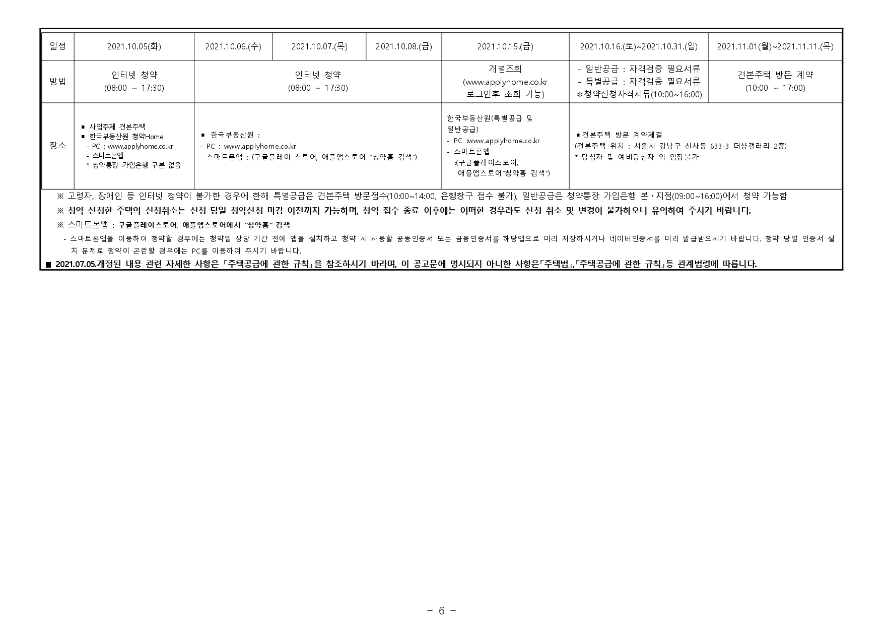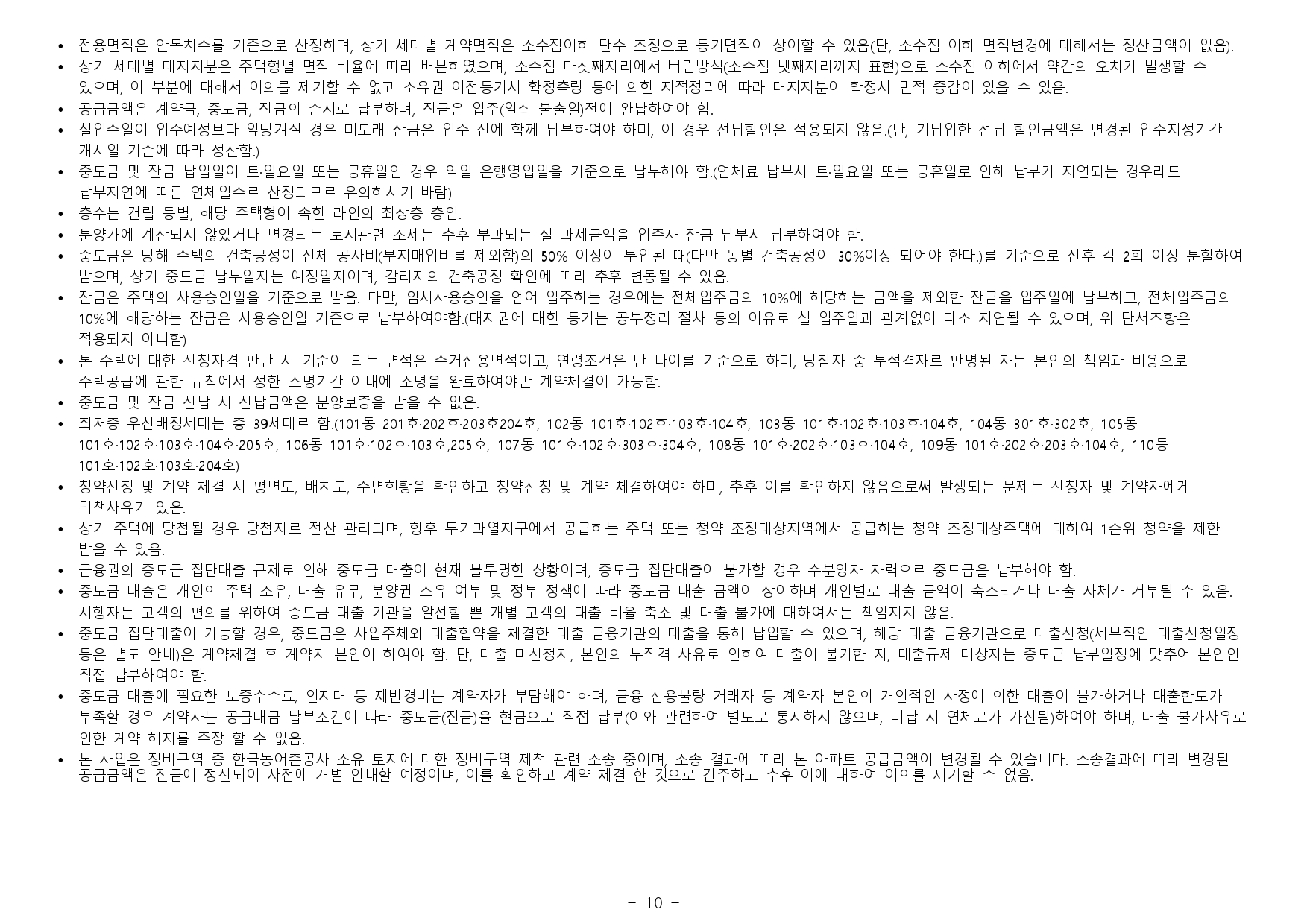 - 재당첨 제한 : 본 아파트의 당첨자로 선정된 자 및 세대에 속한 자는 당첨 주택형별 재당첨 제한 기간 내에 다른 분양주택(분양전환공공임대주택을 포함하되, 투기과열지구 및 청약과열지역이 아닌 지역 에서 공급되는 민영주택은 제외한다)의 입주자로 선정될 수 없습니다. (향후 「주택법」 및 관계법령 개정에 따라 조정될 수 있음)