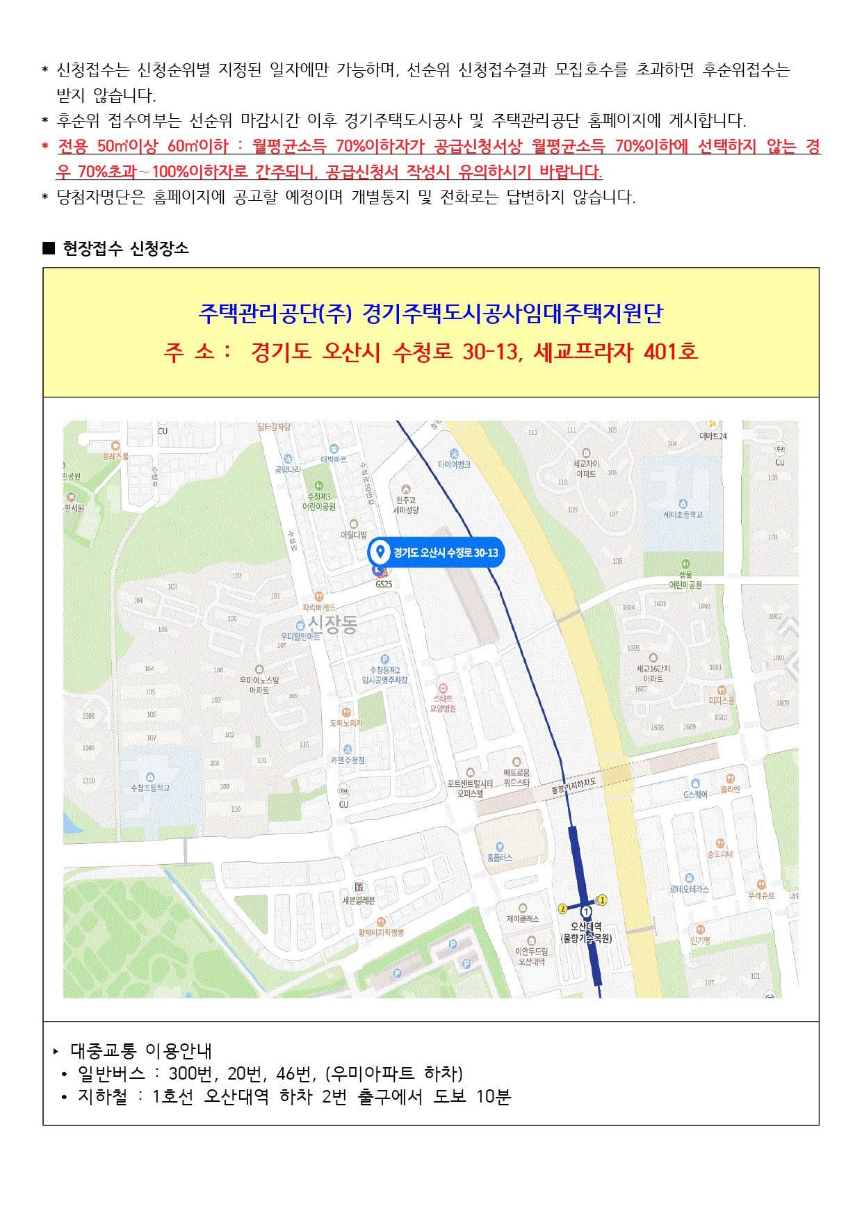 ▪ 인터넷접수는 불가능하고 현장접수만 가능하며, 선순위 신청자가 모집호수를 초과하면 후순위자는 접수받지 않습니다.(접수마감 시 홈페이지 게시)