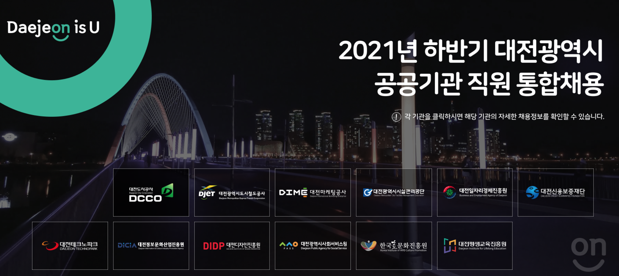 2021년 대전시 공공기관 통합채용 안내입니다.