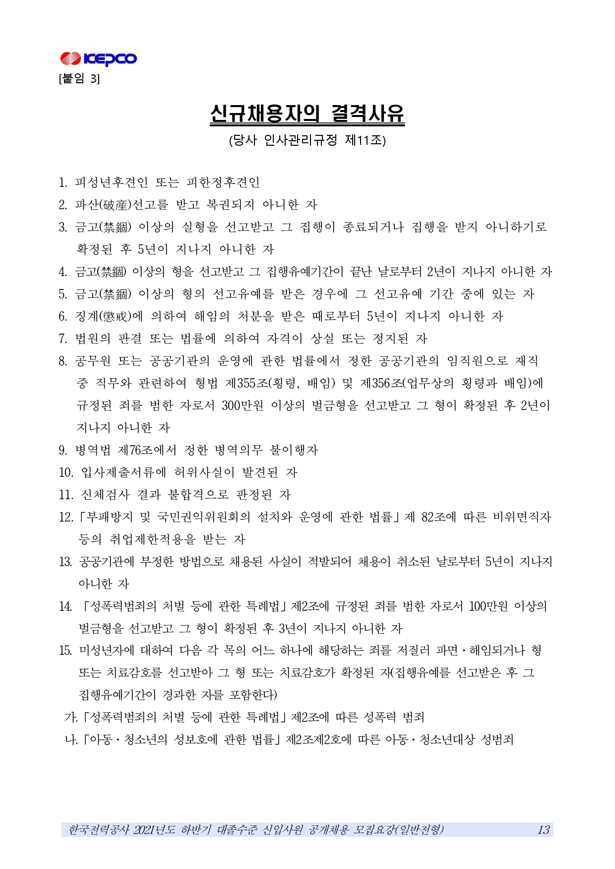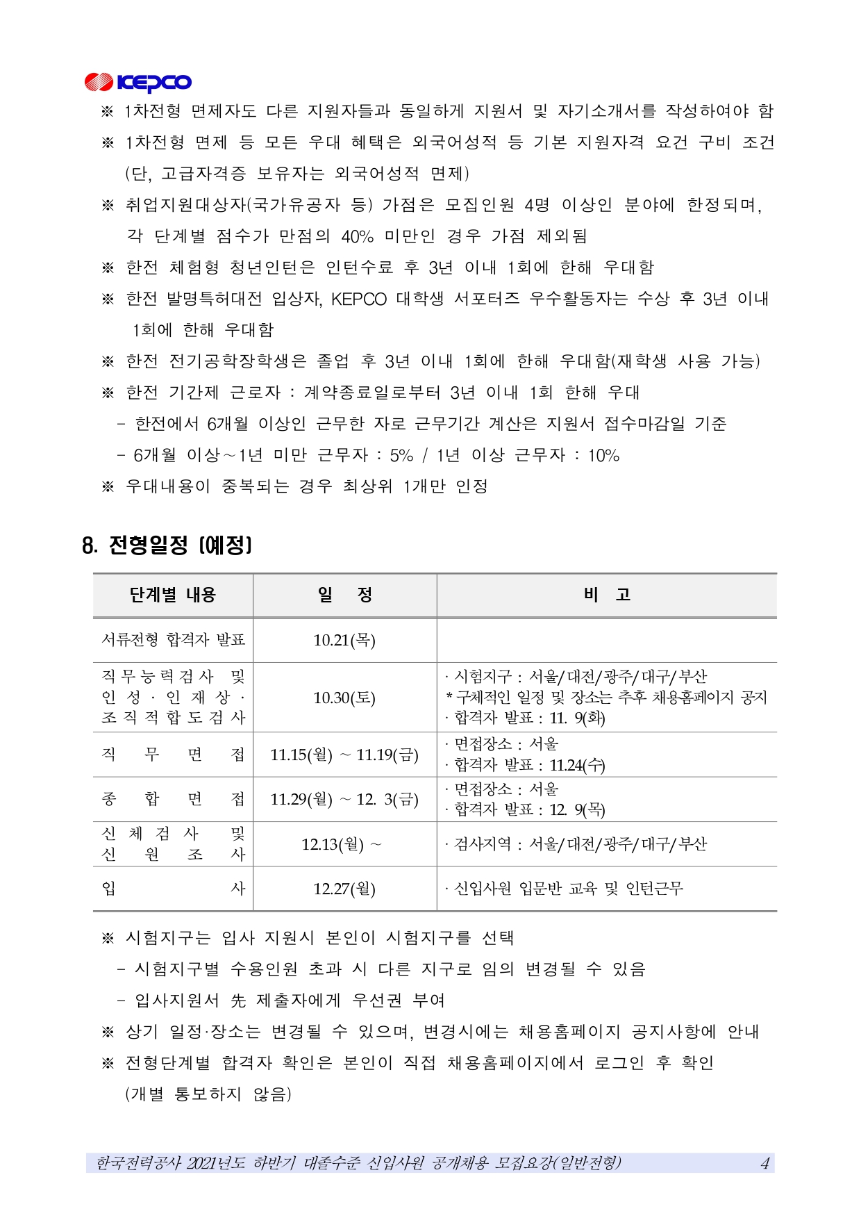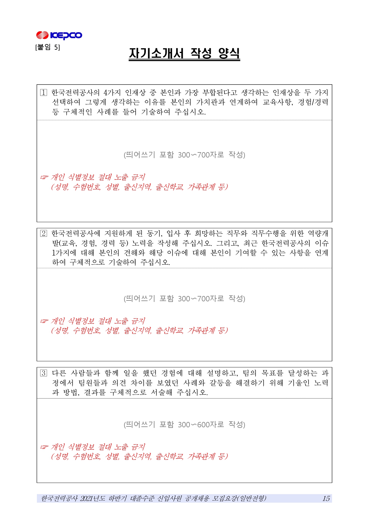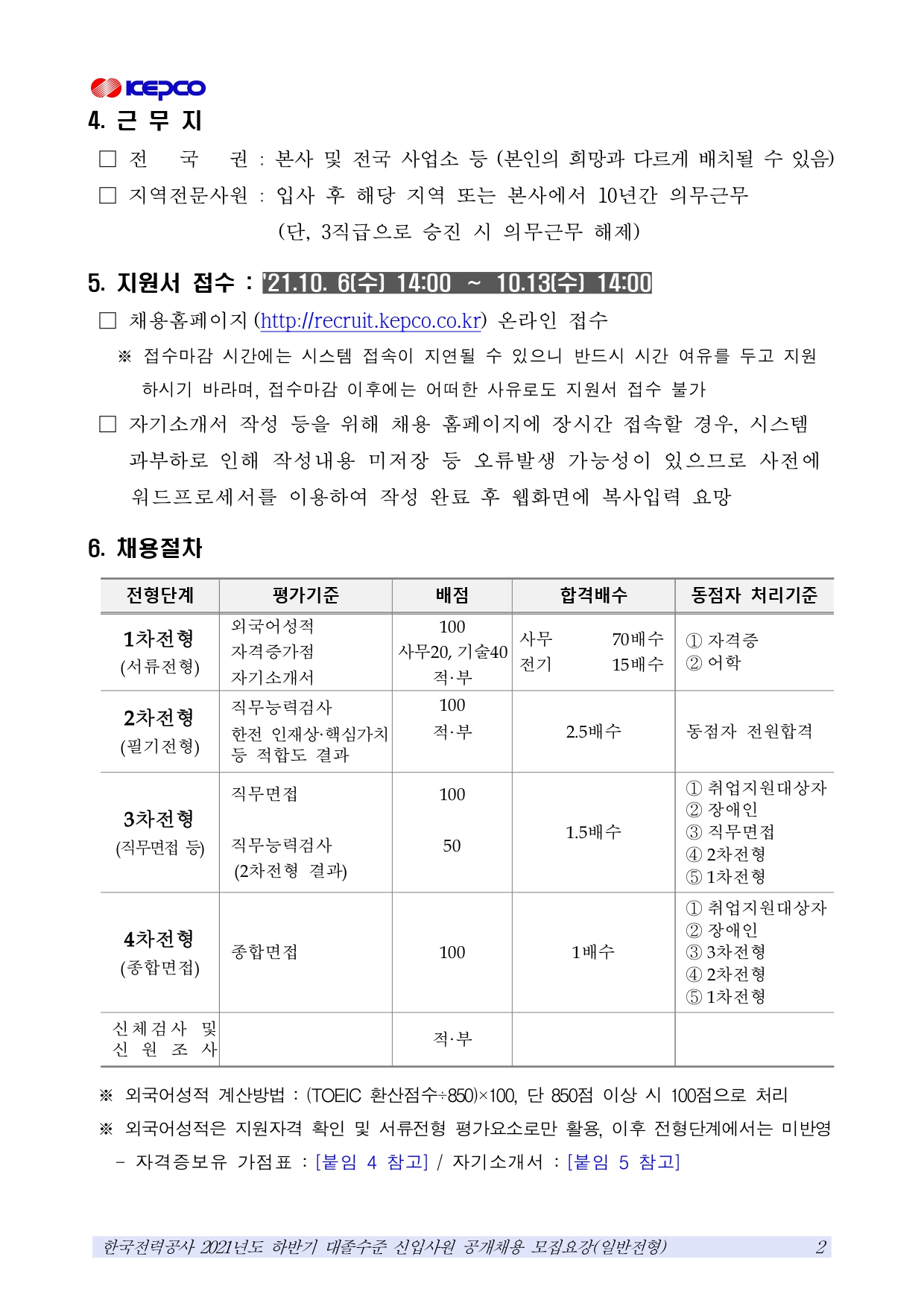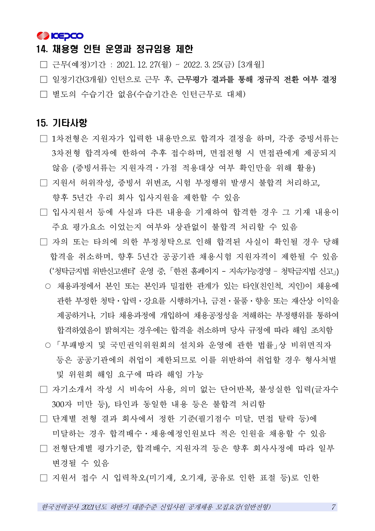 2021 하반기 한국전력공사 대졸수준 공개채용 공고(일반전형)(~10.13)입니다.