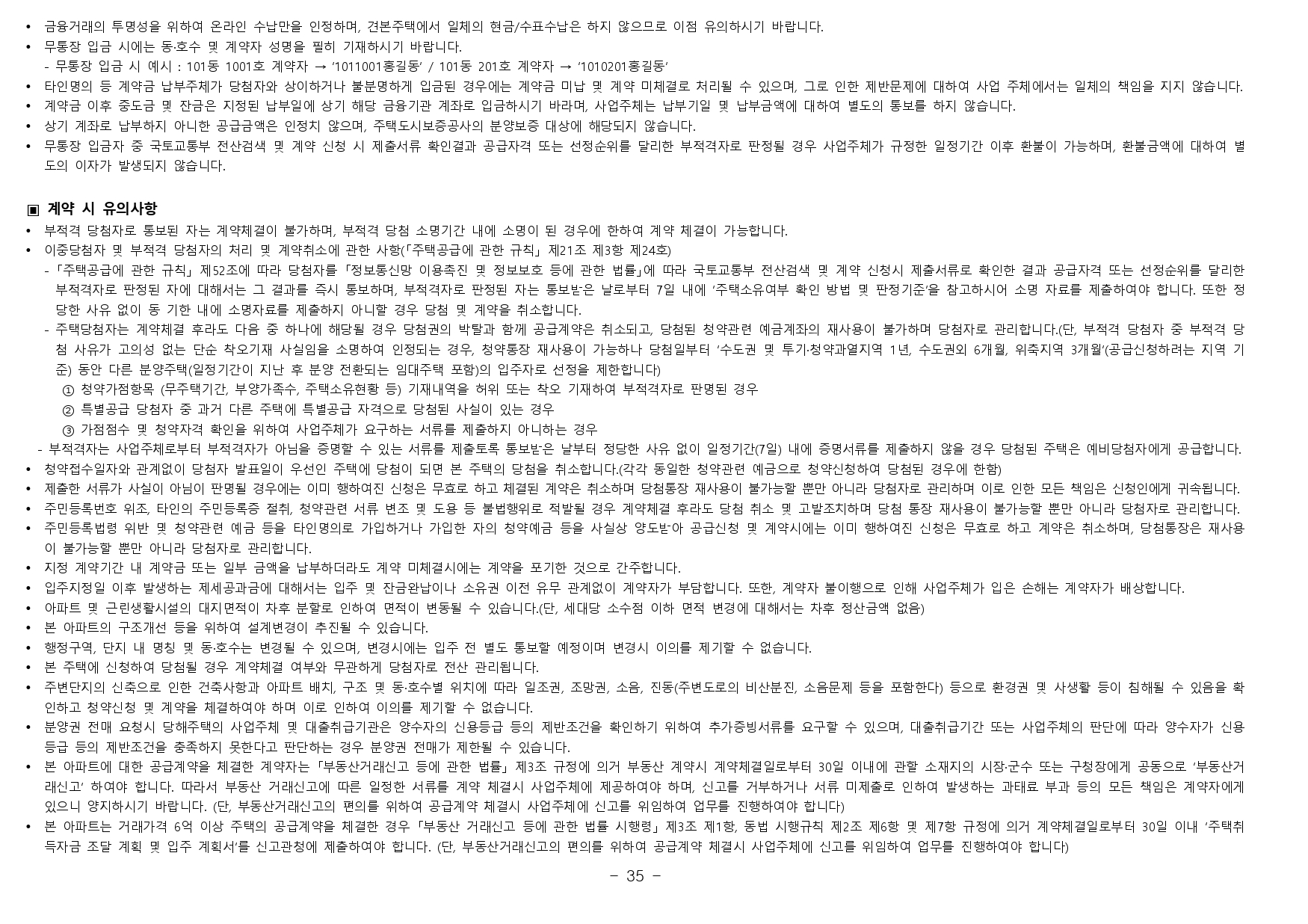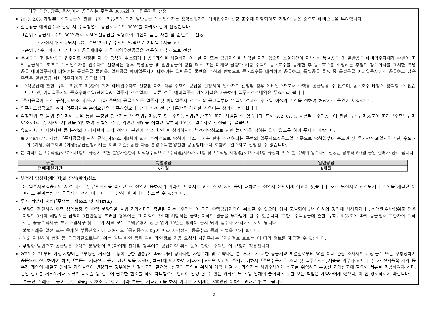 ▪ 본 아파트의 당첨자로 선정 시 당첨자 및 세대에 속한 자는 당첨일로부터 향후 5년간 투기과열지구 및 청역과열지역에서 공급하는 주택의 1순위 청약 접수가 제한되오니 유의하시기 바랍니다.