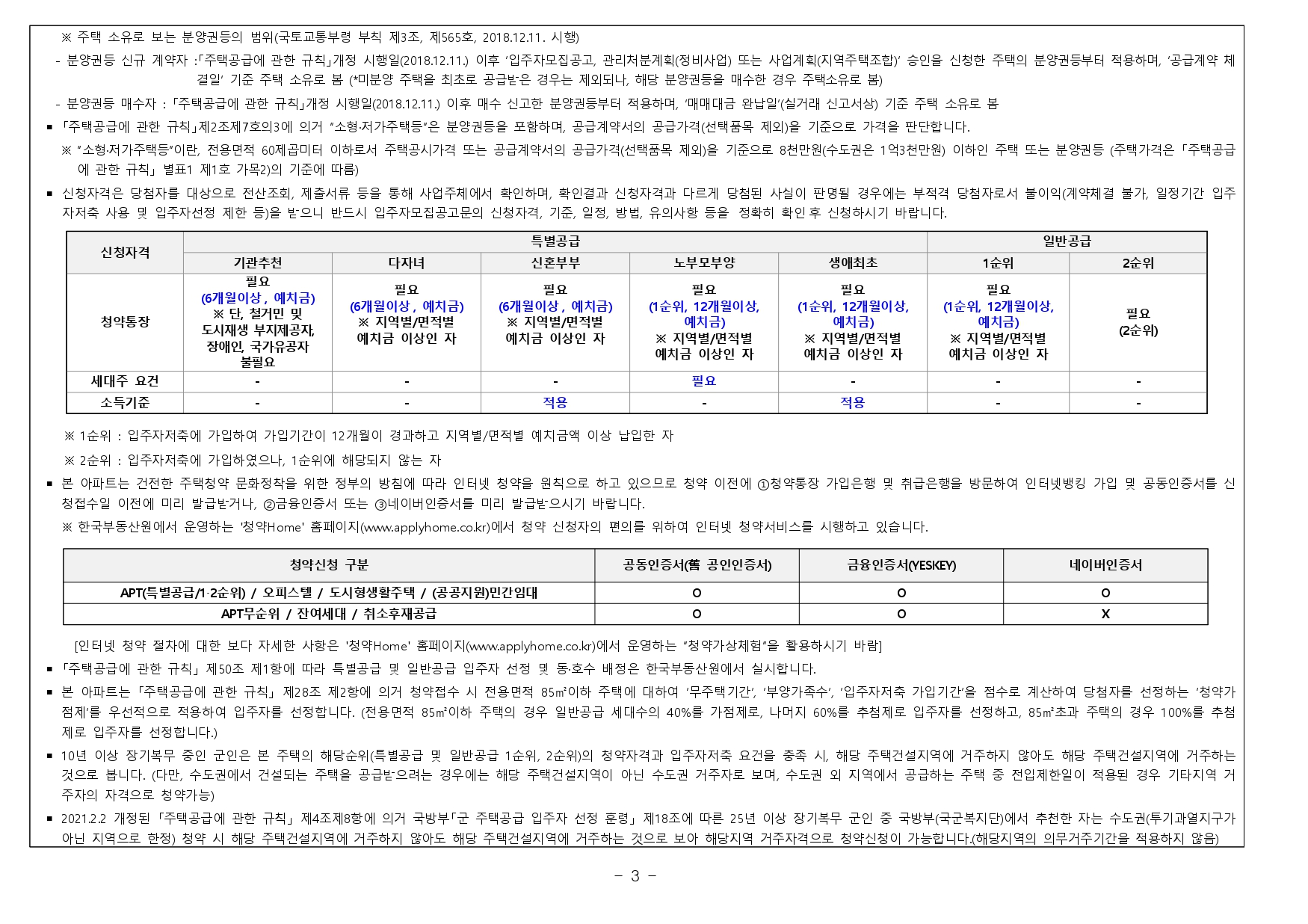 ▪ 본 아파트는 2021.07.05. 시행된 「주택공급에 관한 규칙」이 적용되며, 이 공고문에 명시되지 아니한 사항은 「주택법」, 「주택공급에 관한 규칙」등 관계법령에 따릅니다.