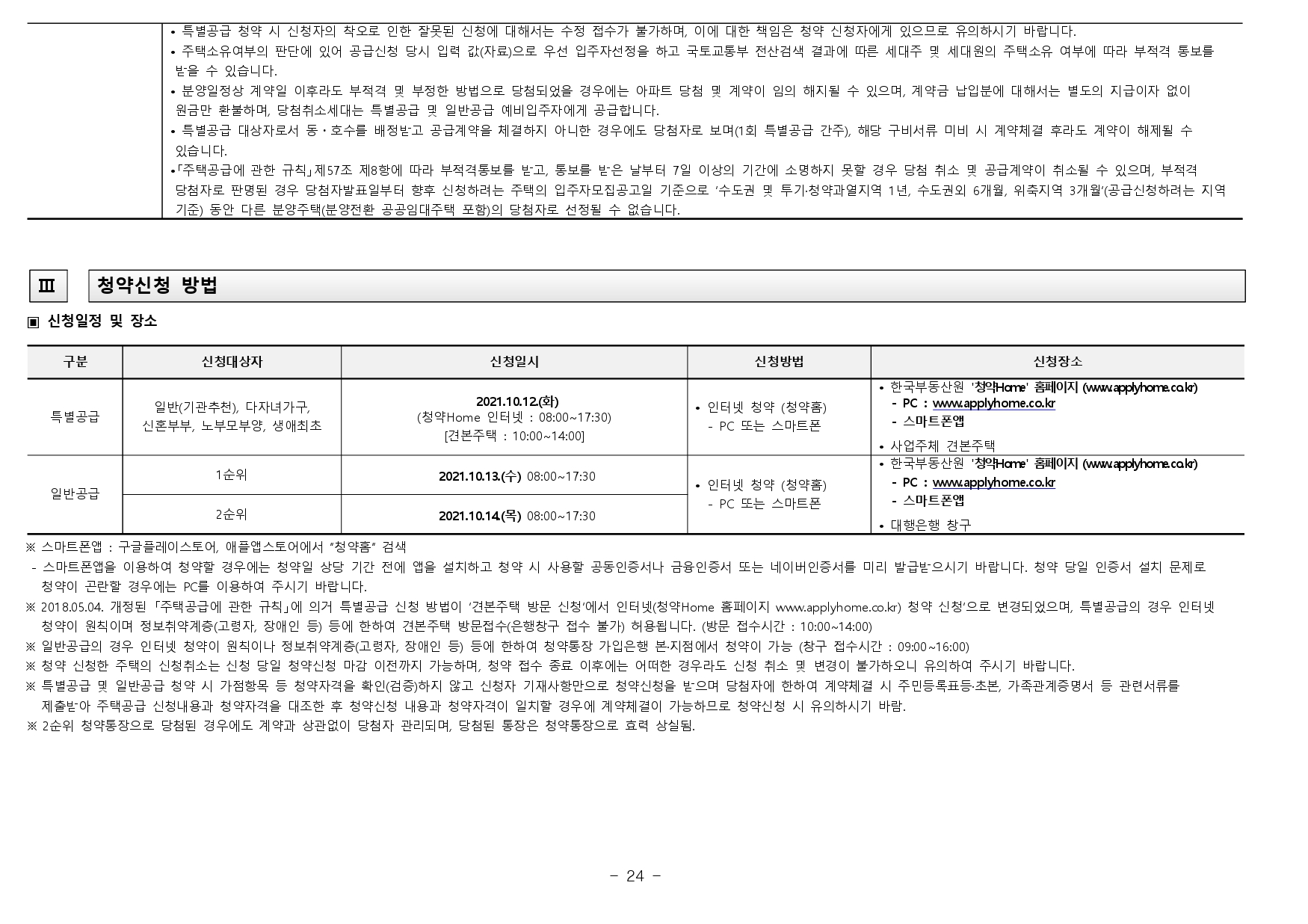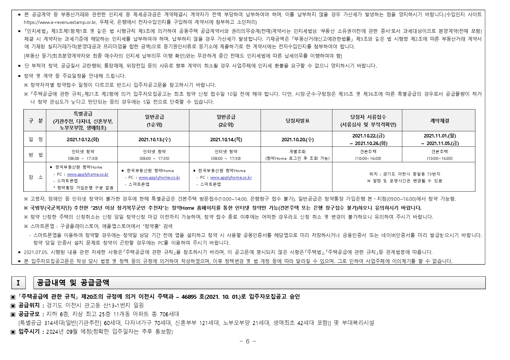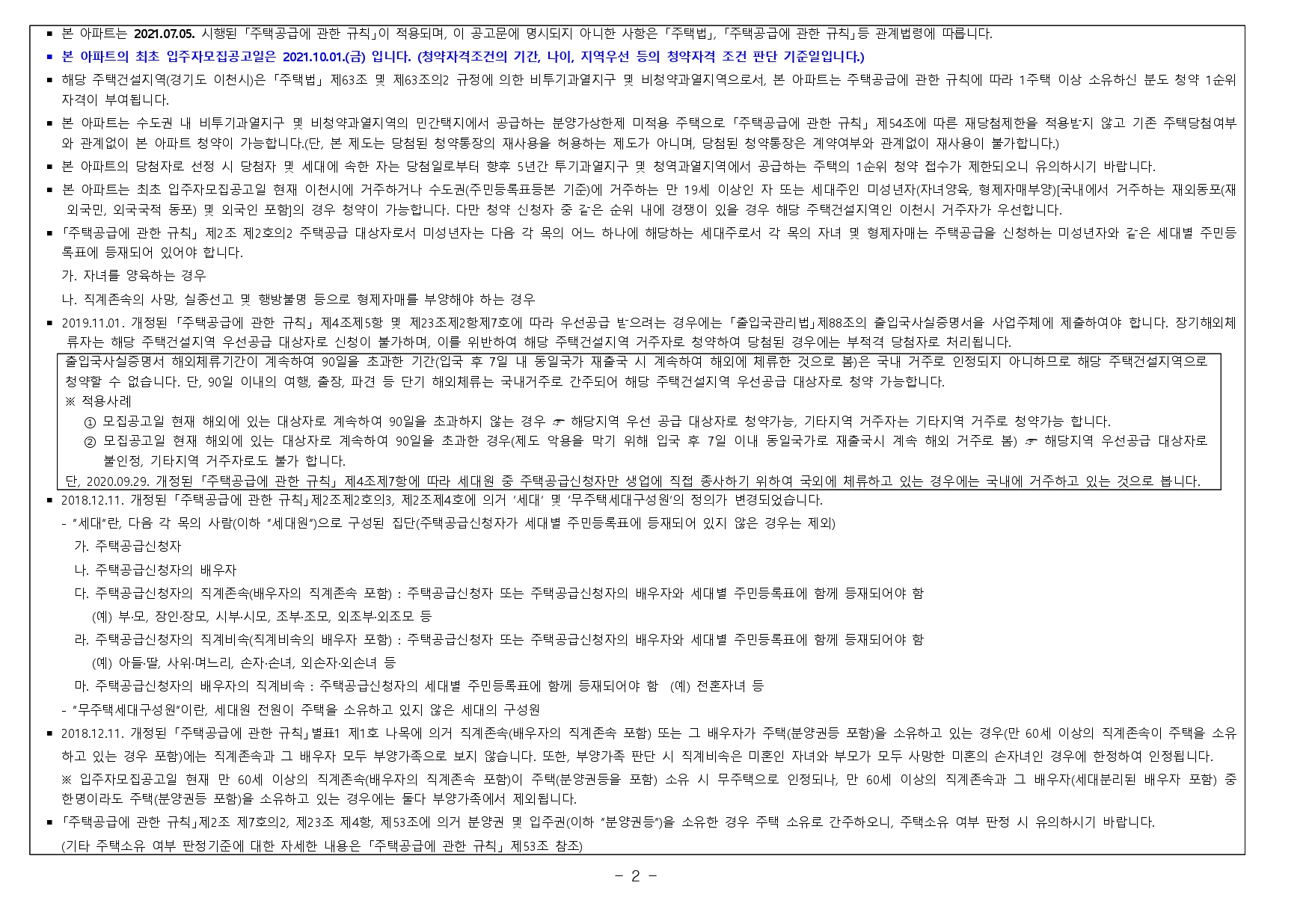 아파트는 2021.07.05. 시행된 「주택공급에 관한 규칙」이 적용되며, 공고문에 명시되지 아니한 사항은 「주택법」, 「주택공급에 관한 규칙」등 관계법령에 따릅니다.