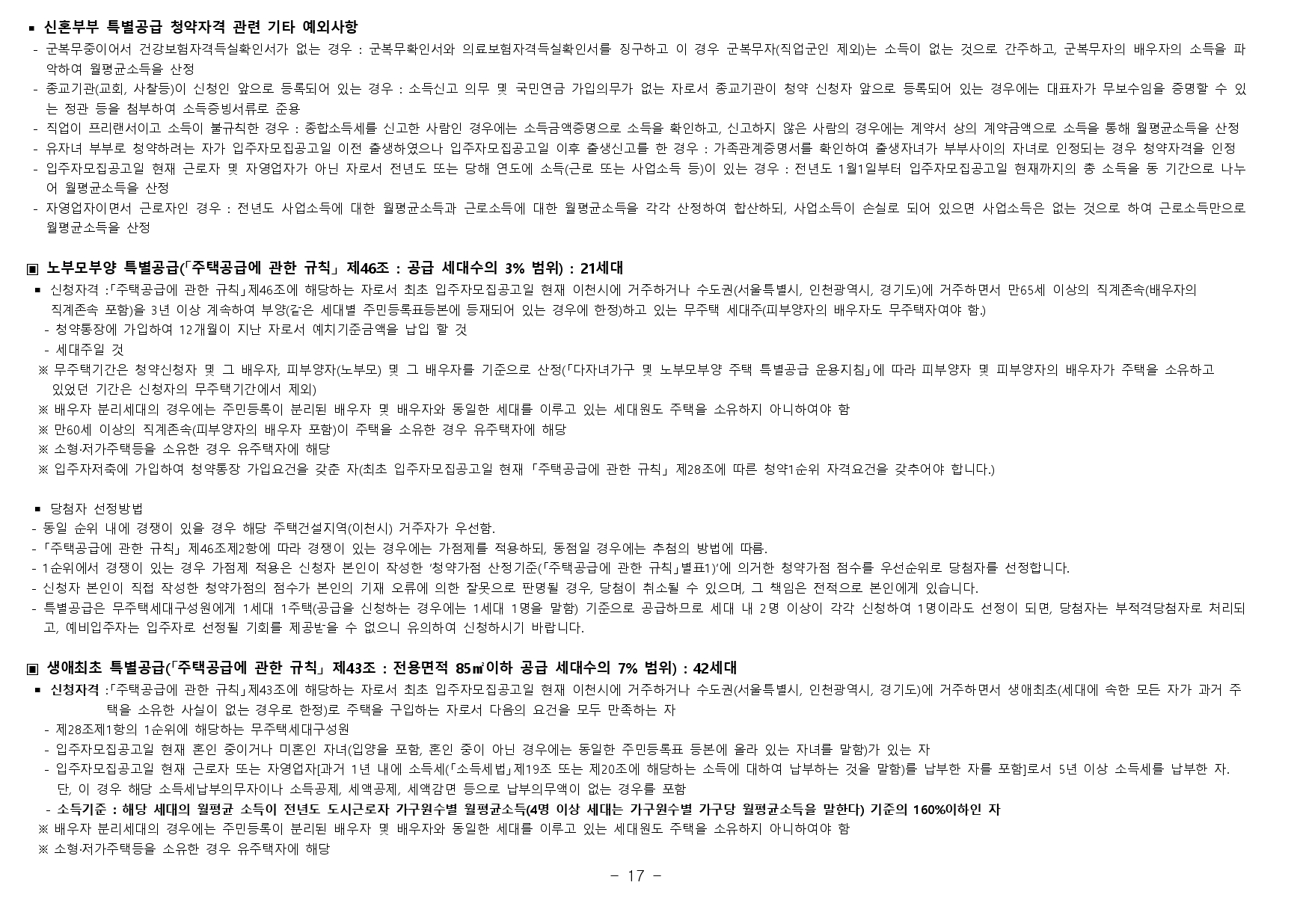 ▪ 본 아파트는 최초 입주자모집공고일 현재 이천시에 거주하거나 수도권(주민등록표등본 기준)에 거주하는 만 19세 이상인 자 또는 세대주인 미성년자(자녀양육, 형제자매부양)[국내에서 거주하는 재외동포(재 외국민, 외국국적 동포) 및 외국인 포함]의 경우 청약이 가능합니다. 다만 청약 신청자 중 같은 순위 내에 경쟁이 있을 경우 해당 주택건설지역인 이천시 거주자가 우선합니다.