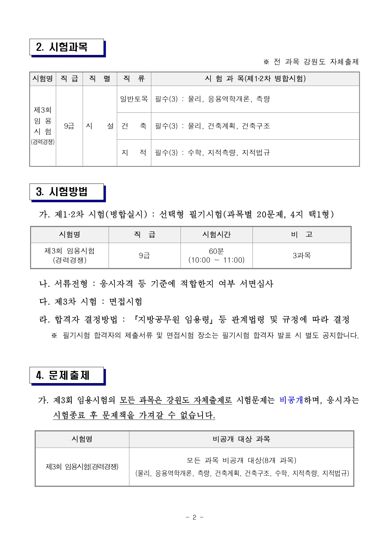 강원도 공무원 임용시험 자세한 내용은 다음과 같습니다.