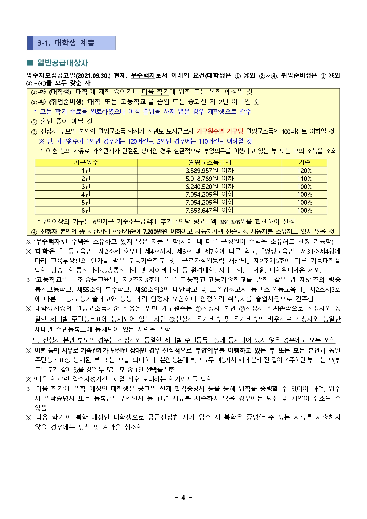 • 상기 신청자격에 따라 임대조건이 달리 적용되오니 해당 신청자격별 세부기준을 확인 하신 후 신청하시기 바랍니다.