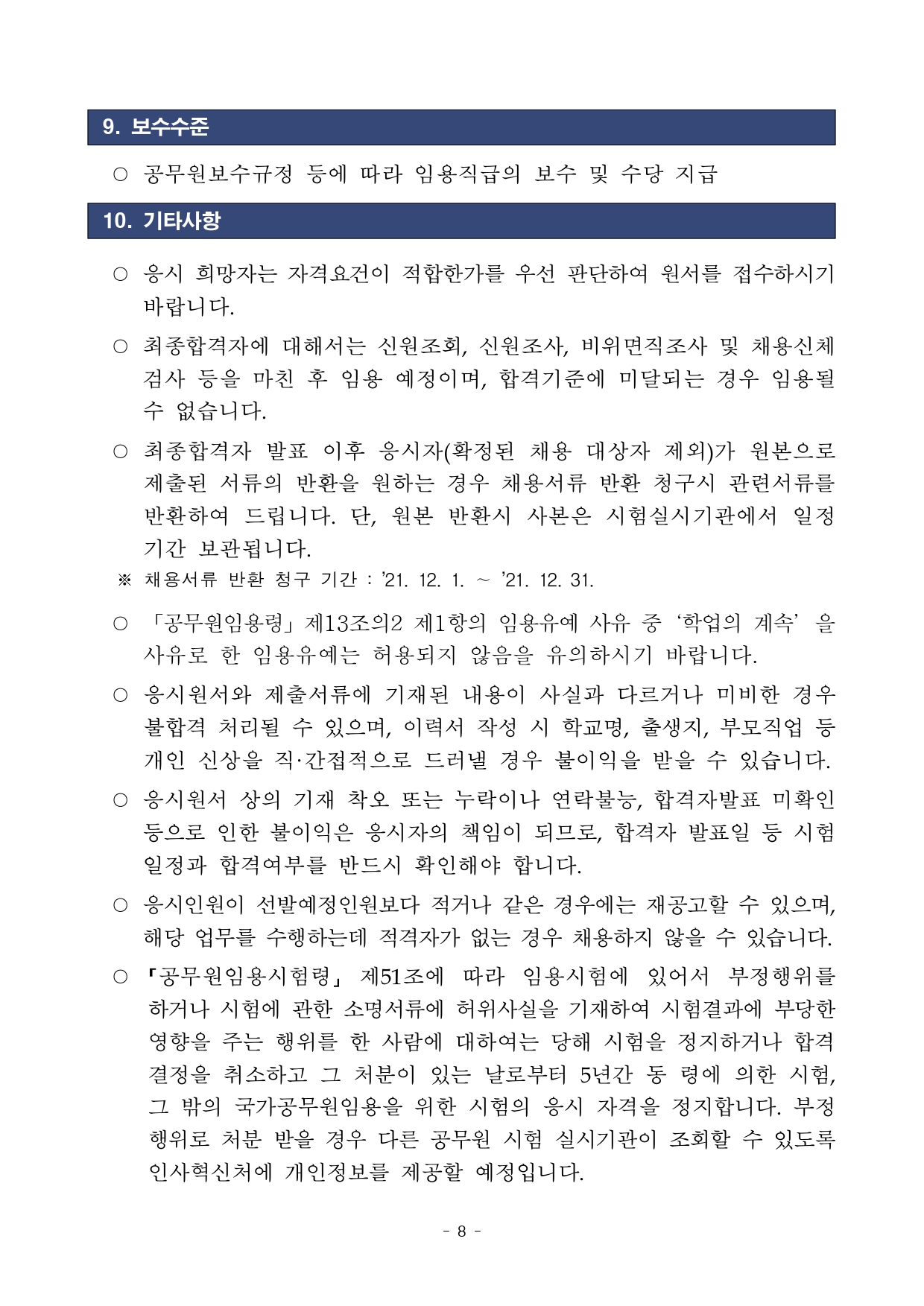 2021년도 국가공무원 경력경쟁채용시험 공고(10.7)입니다.