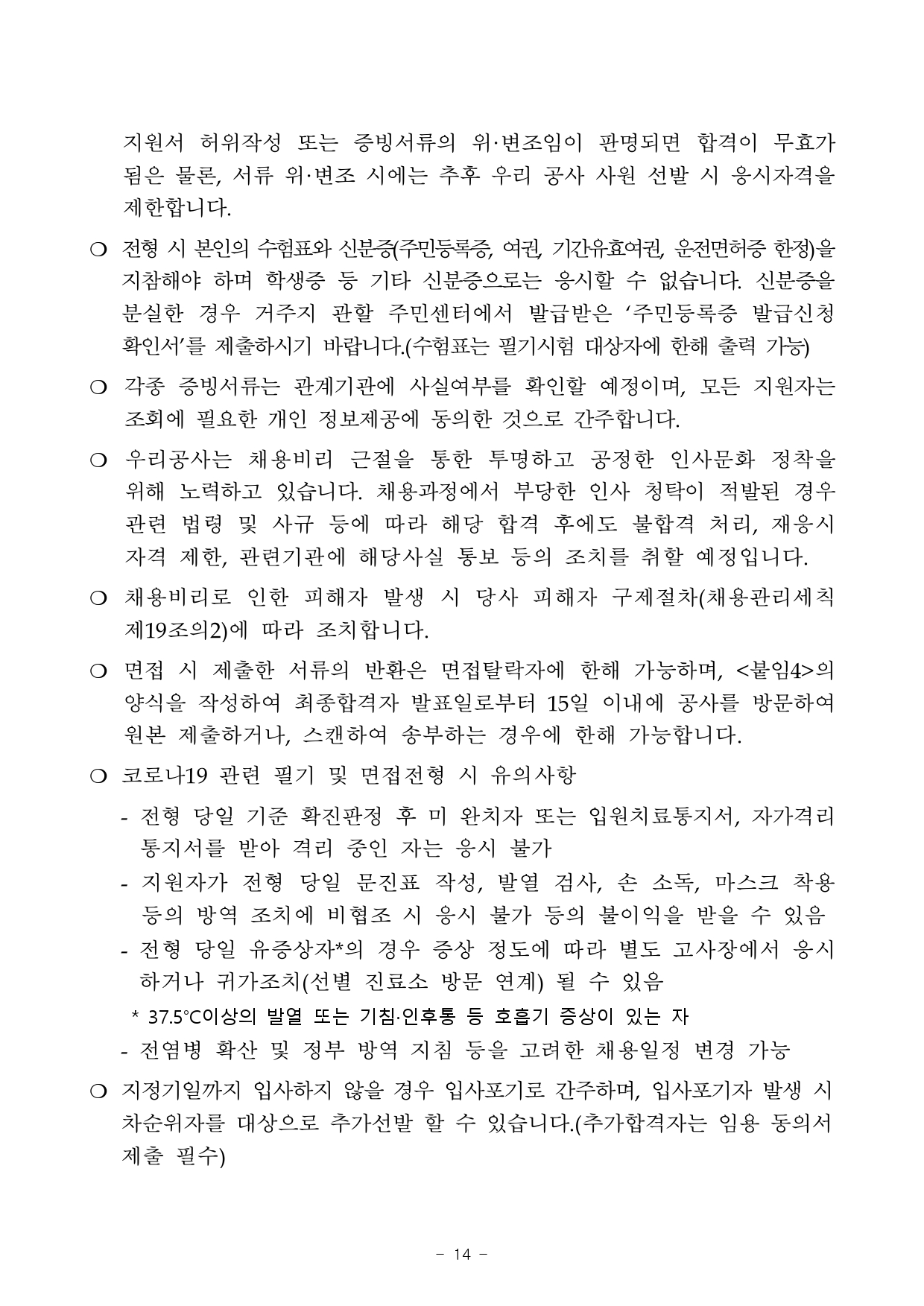 - 당사 인사규정 제9조(결격사유)의 임용 결격사유가 없는 자