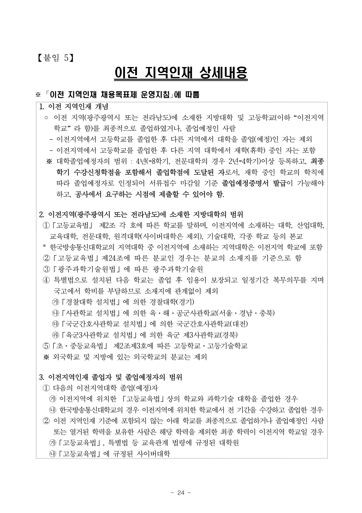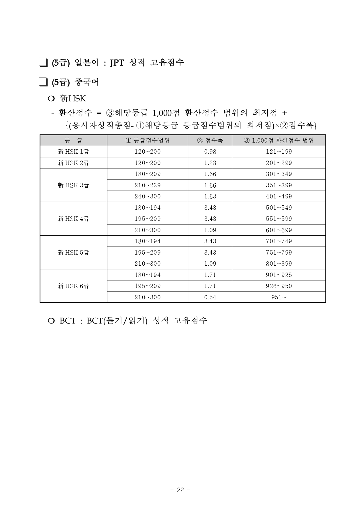 * 선발예정인원 : 20배수 선발(동점자 전원 선발)