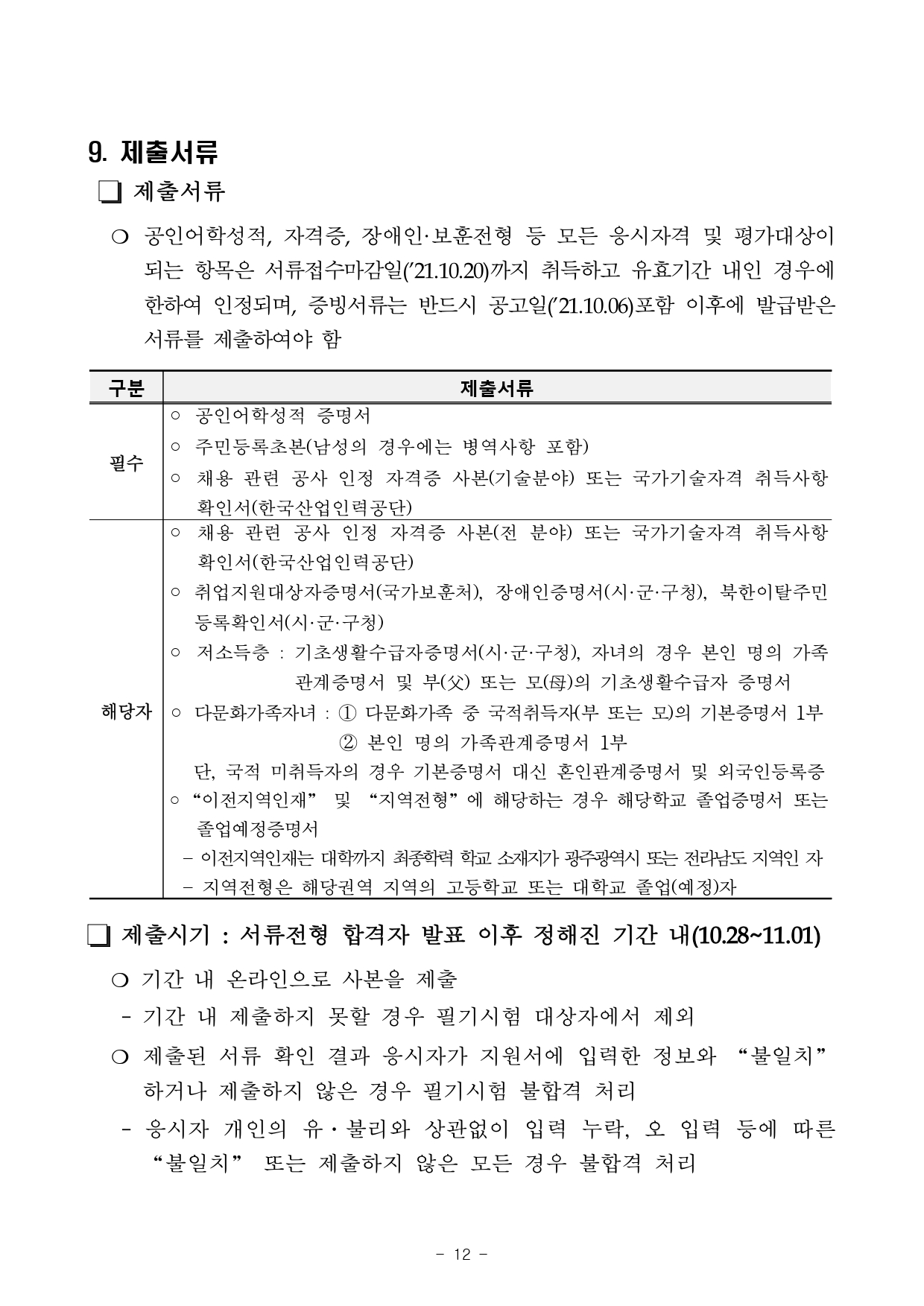 - 어학 : 2019.11.25.부터 응시하고, 서류접수마감일(21.10.20.)까지 발표한 국내 정기시험 성적이 일정 기준 성적 이상인 자(토익기준 600점, 다른 어학성적은 공고문 참조)
