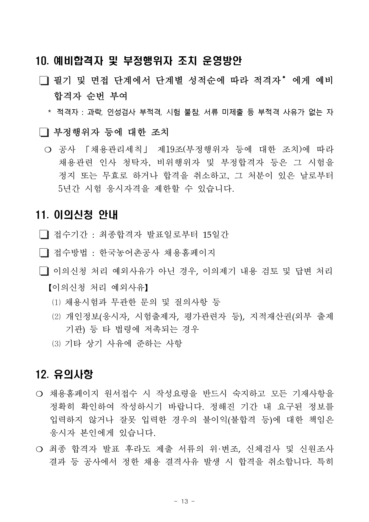 2) 필기전형 : ①직무수행능력평가(200점) + ②직업기초능력평가(100점) + ③인성검사(적/부 판단) * 선발예정인원 : 2~3배수 선발(동점자 전원 선발)
