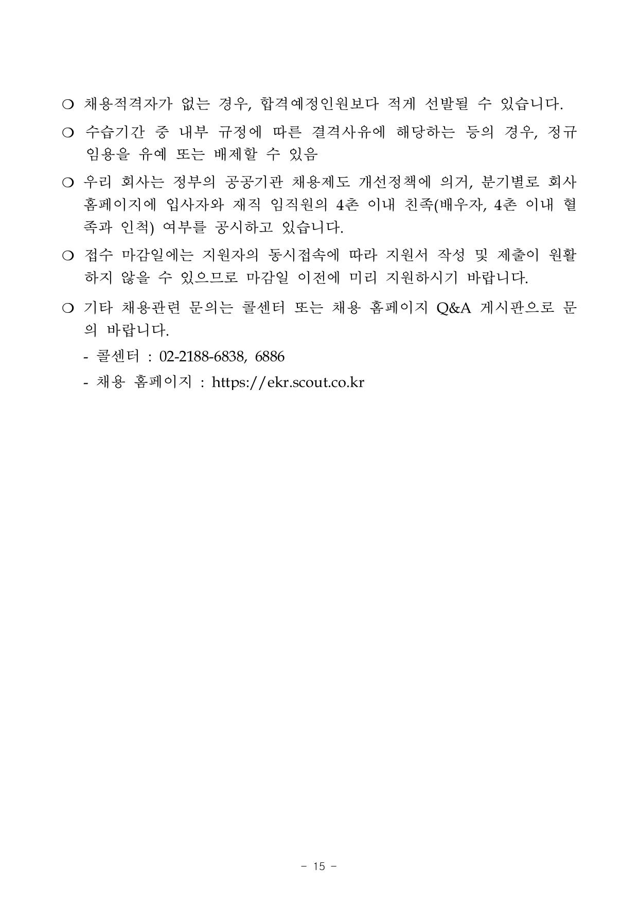 ※ 신입사원 교육 및 수습근무(12개월 이내) 후 정규 임용