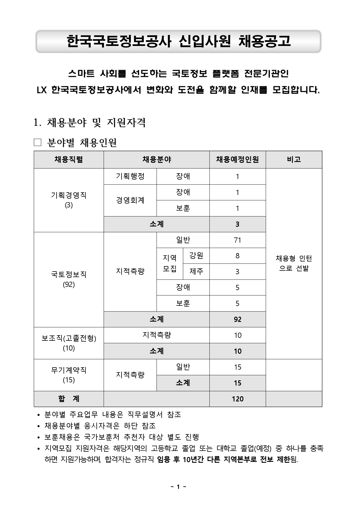 스마트 사회를 선도하는 국토정보 플랫폼 전문기관인 LX 한국국토정보공사에서 변화와 도전을 함께할 인재를 모집합니다.