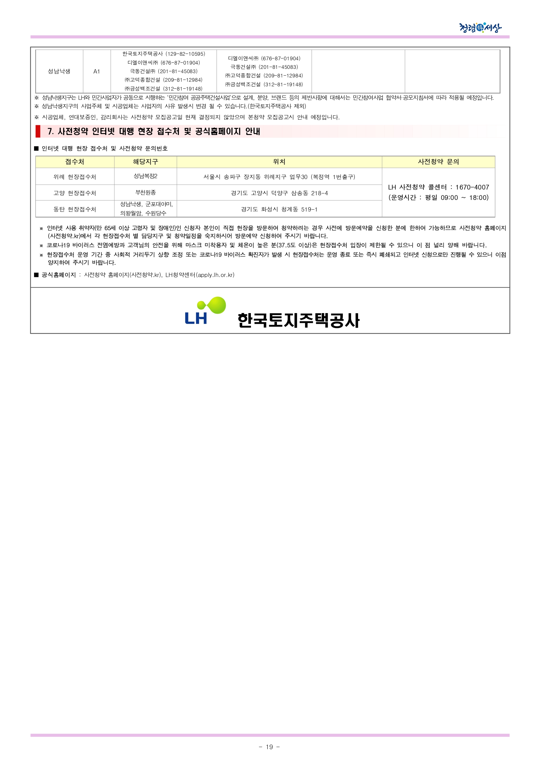 - 성남낙생 : 경기도 성남시 분당구 동원동 일원 1,400호 중 사전청약 공급호수(공공분양) 884호