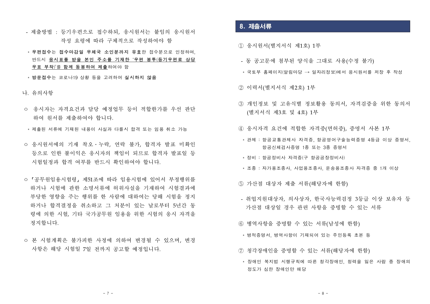 2021년 국토교통부 항공8급 공무원 경력경쟁채용시험 계획 공고입니다.