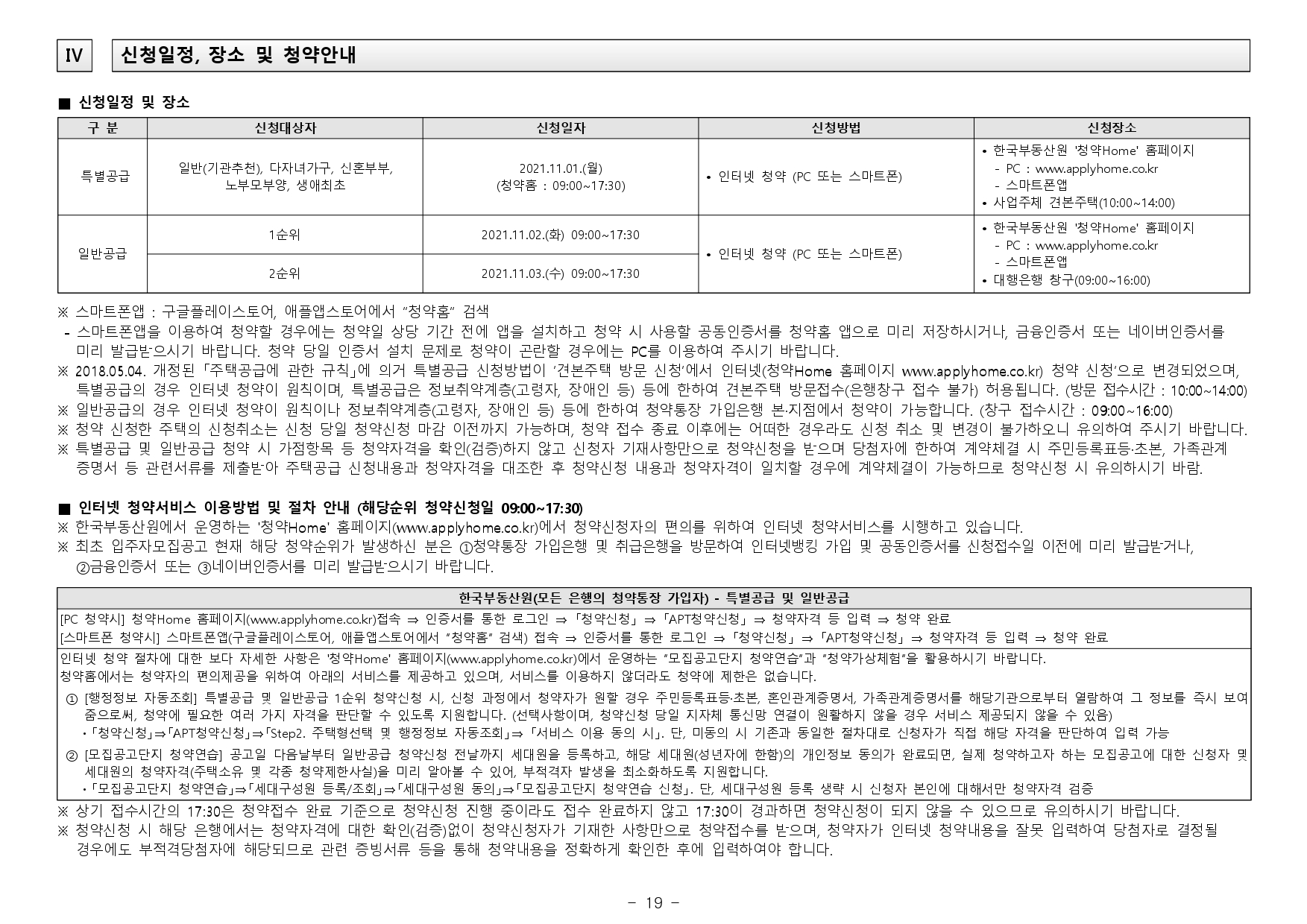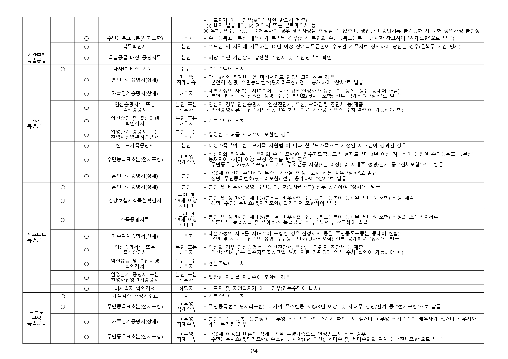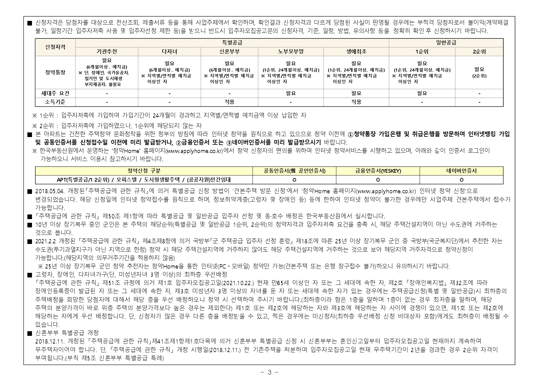 - 2019.11.01. 개정된 「주택공급에 관한 규칙」 제4조제5항 및 제23조제2항제7호에 따라 우선공급 받으려는 경우에는「출입국관리법」제88조의 출입국사실증명서를 사업주체에 제출해야 합니다. 장기해외체류자는 해당 주택건설지역 우선공급 대상자로 신청이 불가하며, 이를 위반하여 해당 주택건설지역 거주자로 청약하여 당첨된 경우에는 부적격 당첨자로 처리됩니다.