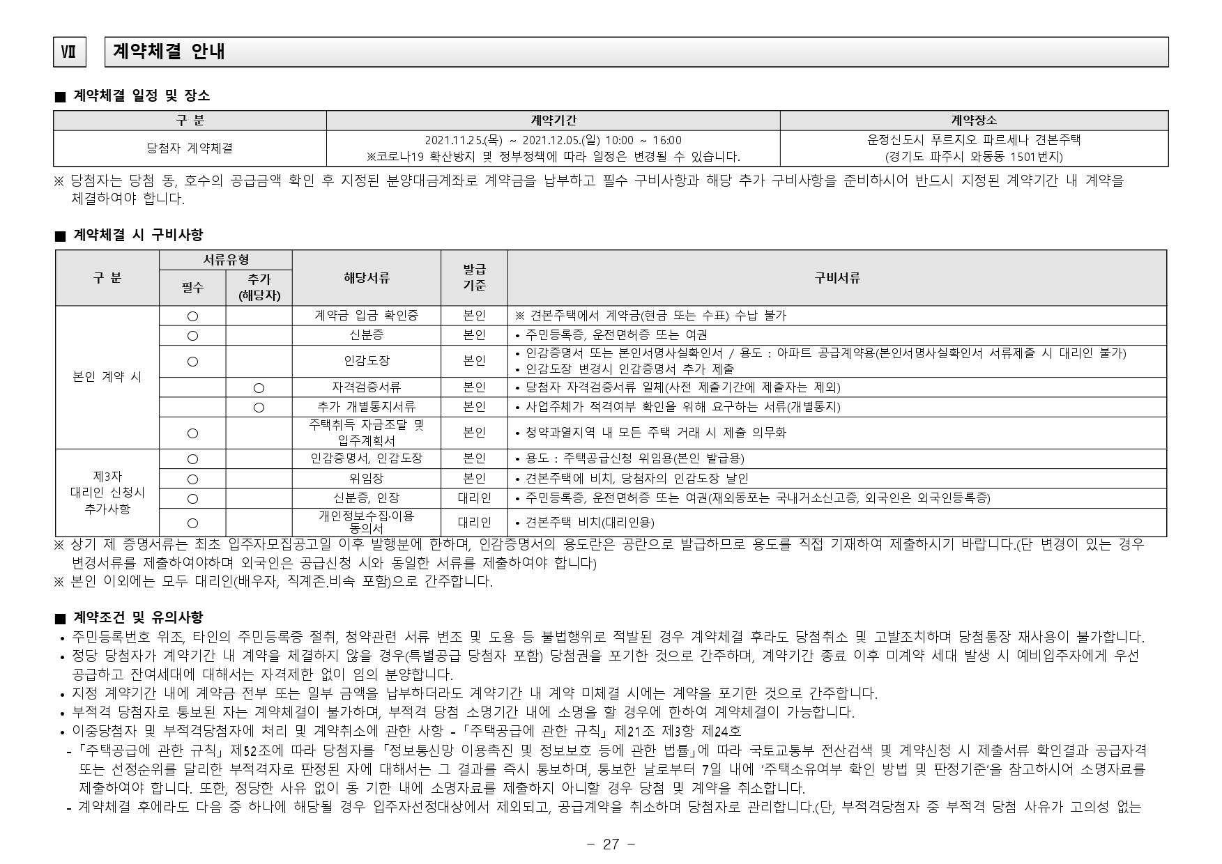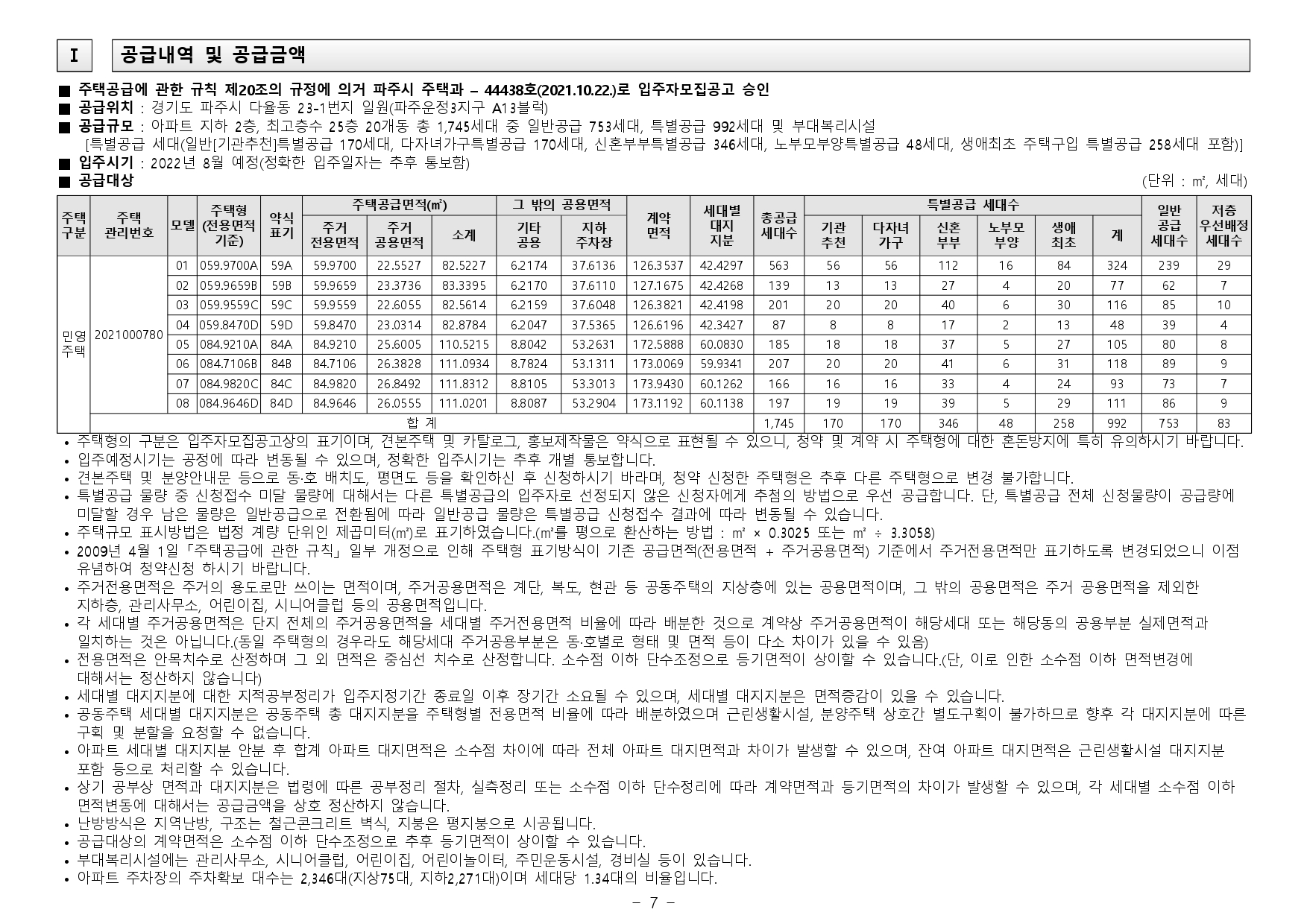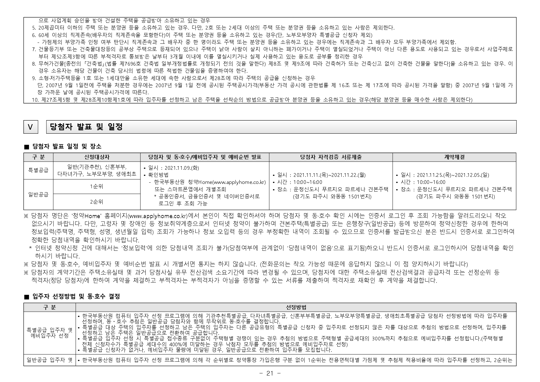 - - 파주시는 청약과열지역으로서 입주자모집공고일 기준 최근 1년간 계속하여 거주해야 1순위(해당 주택건설지역 거주자) 중 우선공급 대상 요건을 충족하게 되며, 국내에 거주하지 않고 해외에 장기간(90일 초과) 체류하고 있는 상태에서 해당 주택건설지역 1순위자로 청약 당첨되는 것은 부정 당첨자에 해당되오니 청약시 유의하시기 바랍니다.