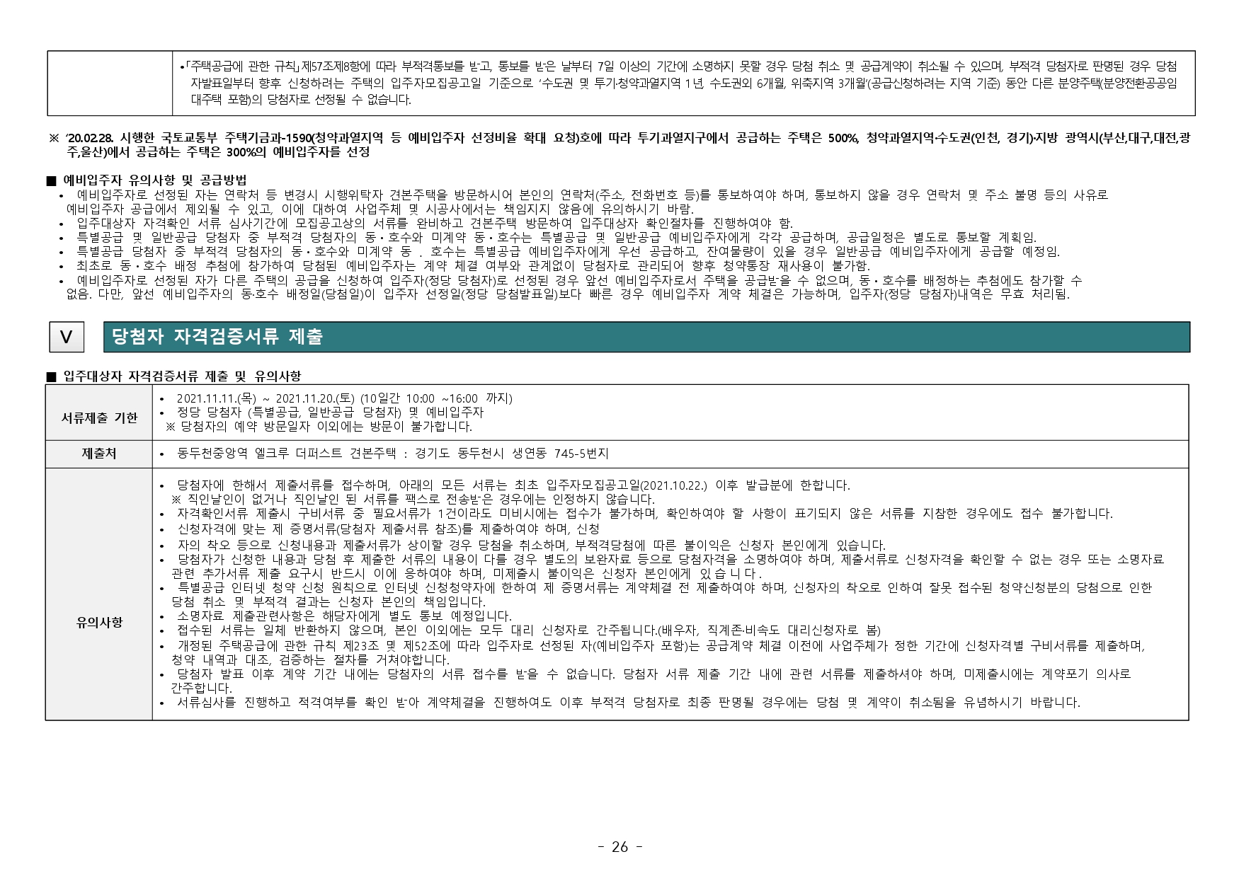 ■ 본 아파트의 당첨자로 선정 시 당첨자 및 세대에 속한 자는 당첨일로부터 향후 5년간 투기과열지구 및 청약과열지역에서 공급하는 주택의 1순위 청약접수가 제한되오니 유의하시기 바랍니다.