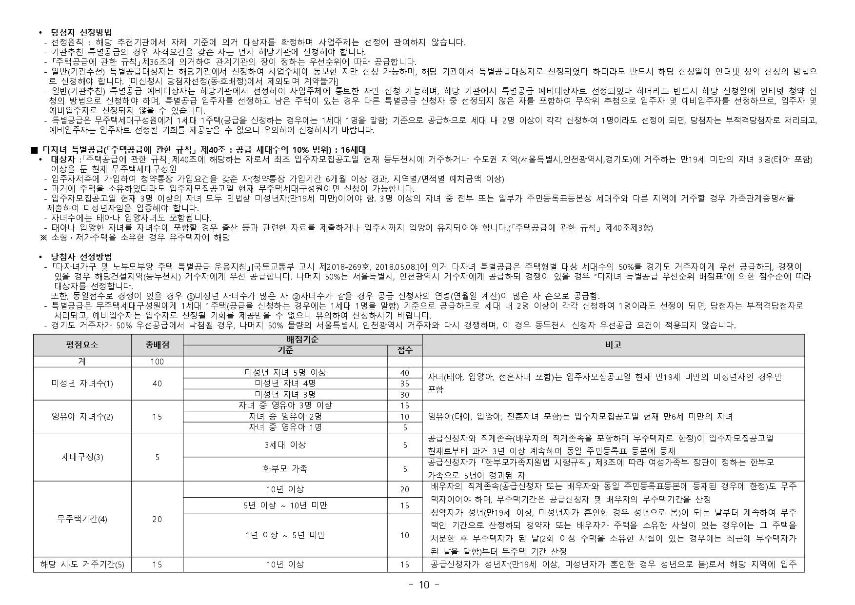 ■ 본 아파트 주택건설지역인 동두천시는 「주택법」 제63조 및 제63조의2에 의한 비투기과열지구 및 청약과열지역으로서, 본 아파트는 「주택공급에 관한 규칙」에 따라 1주택 이상 소유한 세대에 속한 분은 1순위 가 점제 청약이 불가하며, 2주택 이상 소유한 세대에 속한 분은 1순위 자격에서 제외됩니다. ※ 1순위 청약 제한 대상 : ① 세대주가 아닌 자 ② 과거 5년 이내에 다른 주택에 당첨된 자 및 그 세대에 속한 자 (전지역 해당, 모든 청약 대상자) ③ 2주택(분양권 등 포함) 이상을 소유한 자 및 그 세대에 속한 자
