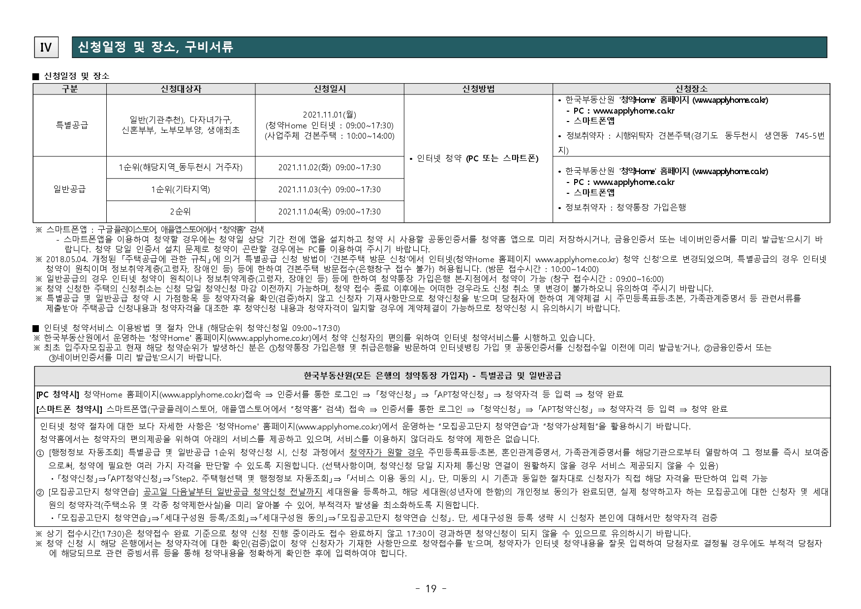 ■ 본 아파트는 최초 입주자모집공고일(2021.10.22.) 현재 동두천시에 거주하거나 수도권(경기도, 서울특별시, 인천광역시)에 거주(주민등록표등본 기준)하는 만19세 이상인 자 또는 세대주인 미성년자(자녀양육, 형제자매부양)[국내에서 거주하는 재외동포(재외국민, 외국국적 동포) 및 외국인 포함]의 경우 청약이 가능합니다. 다만 청약 신청자 중 같은 순위 내에 경쟁이 있을 경우 해당 주택건설지역인 동두천시 거주자가 우 선합니다.