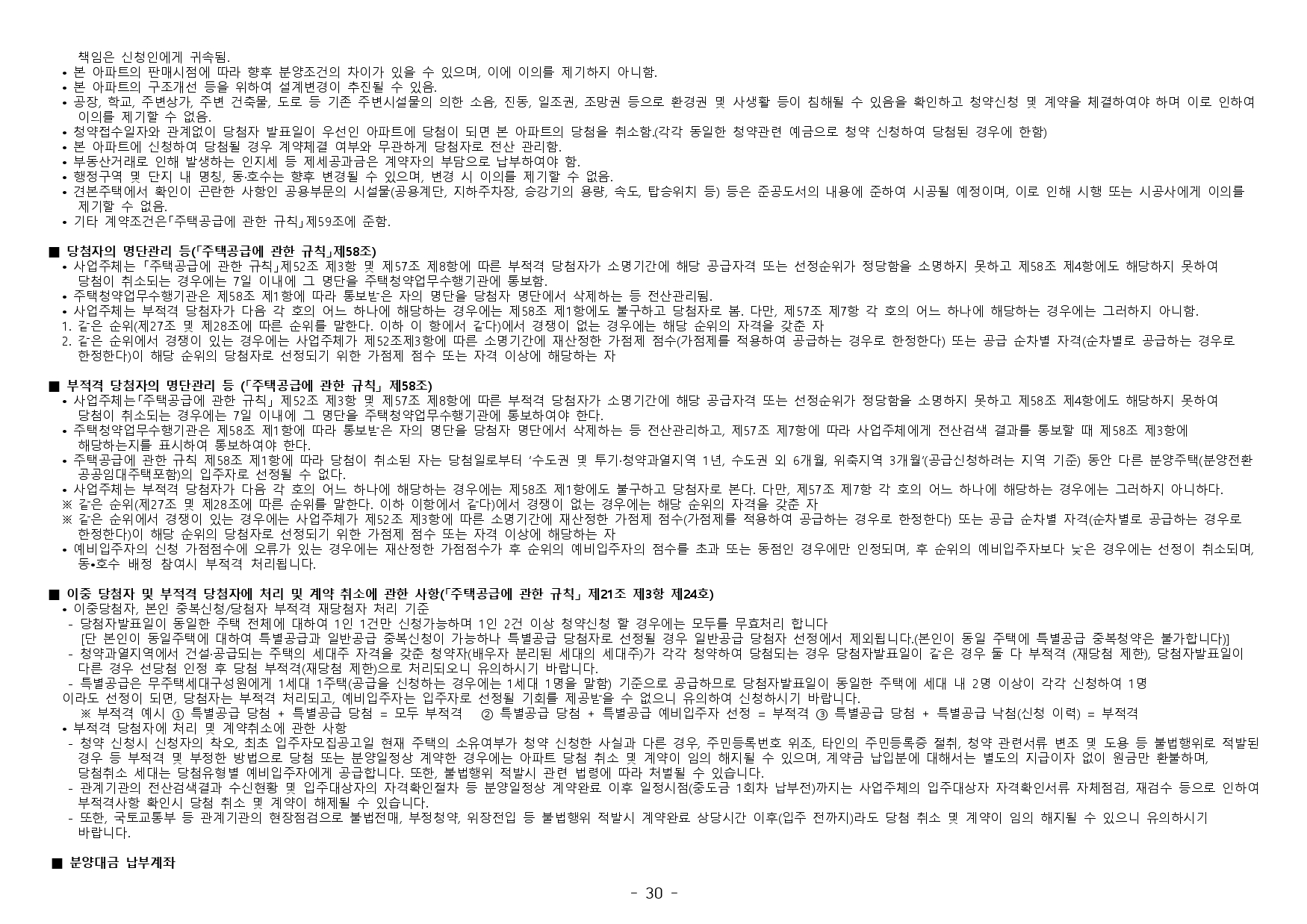 ■ 본 아파트의 당첨자로 선정 시 당첨자 및 세대에 속한 자는 당첨일로부터 향후 5년간 투기과열지구 및 청약과열지역에서 공급하는 주택의 1순위 청약접수가 제한되오니 유의하시기 바랍니다.