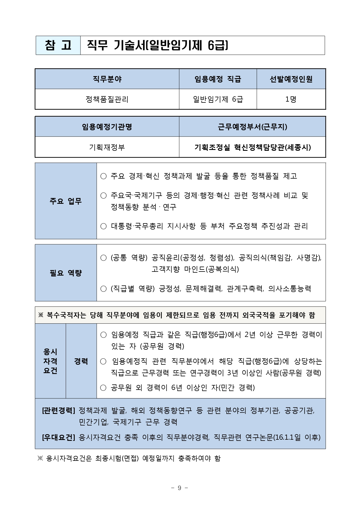 기획재정부에서는 다음과 같이 일반임기제 공무원을 경력경쟁채용 하고자 하오니 유능한 인재의 많은 응모를 바랍니다.