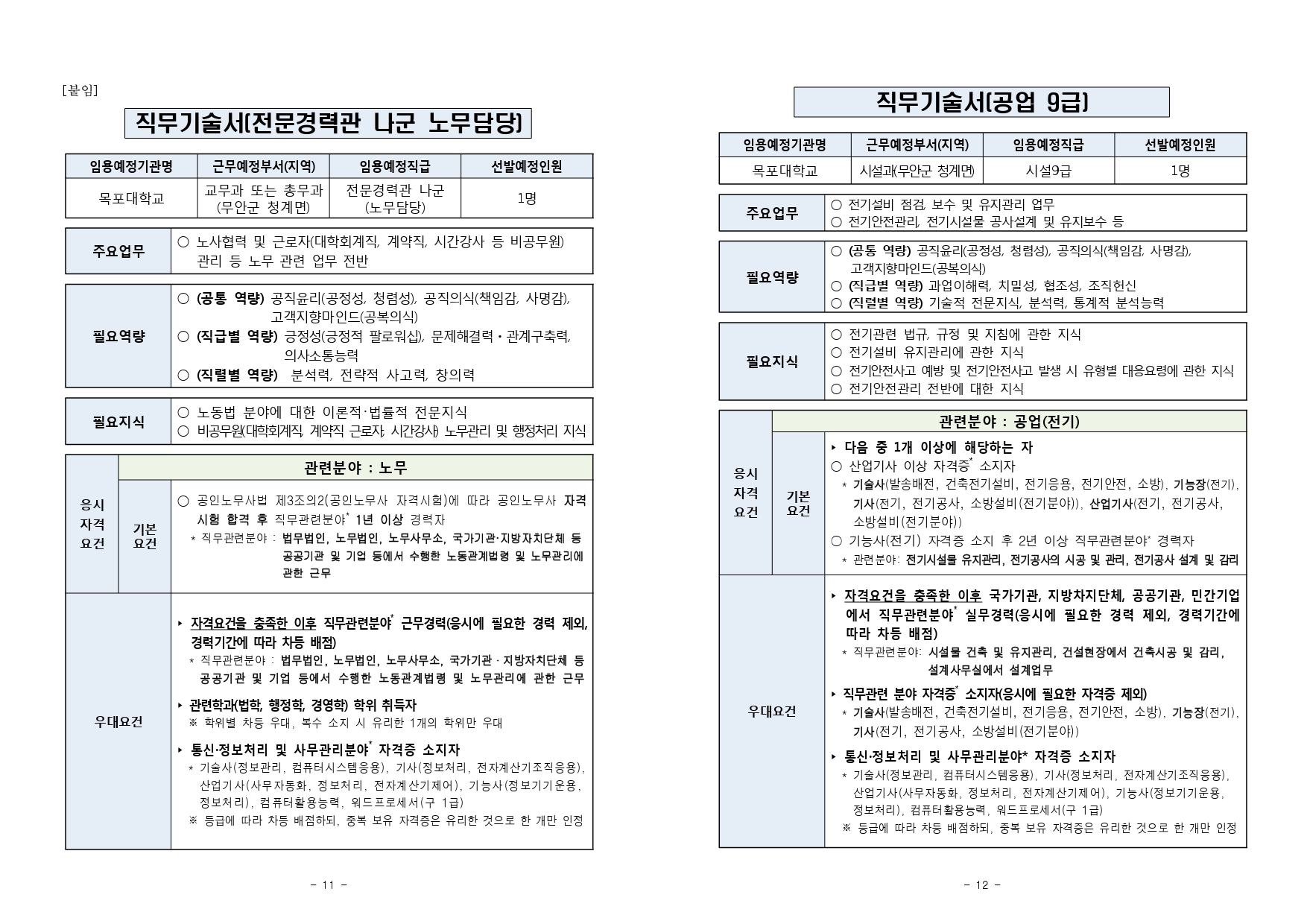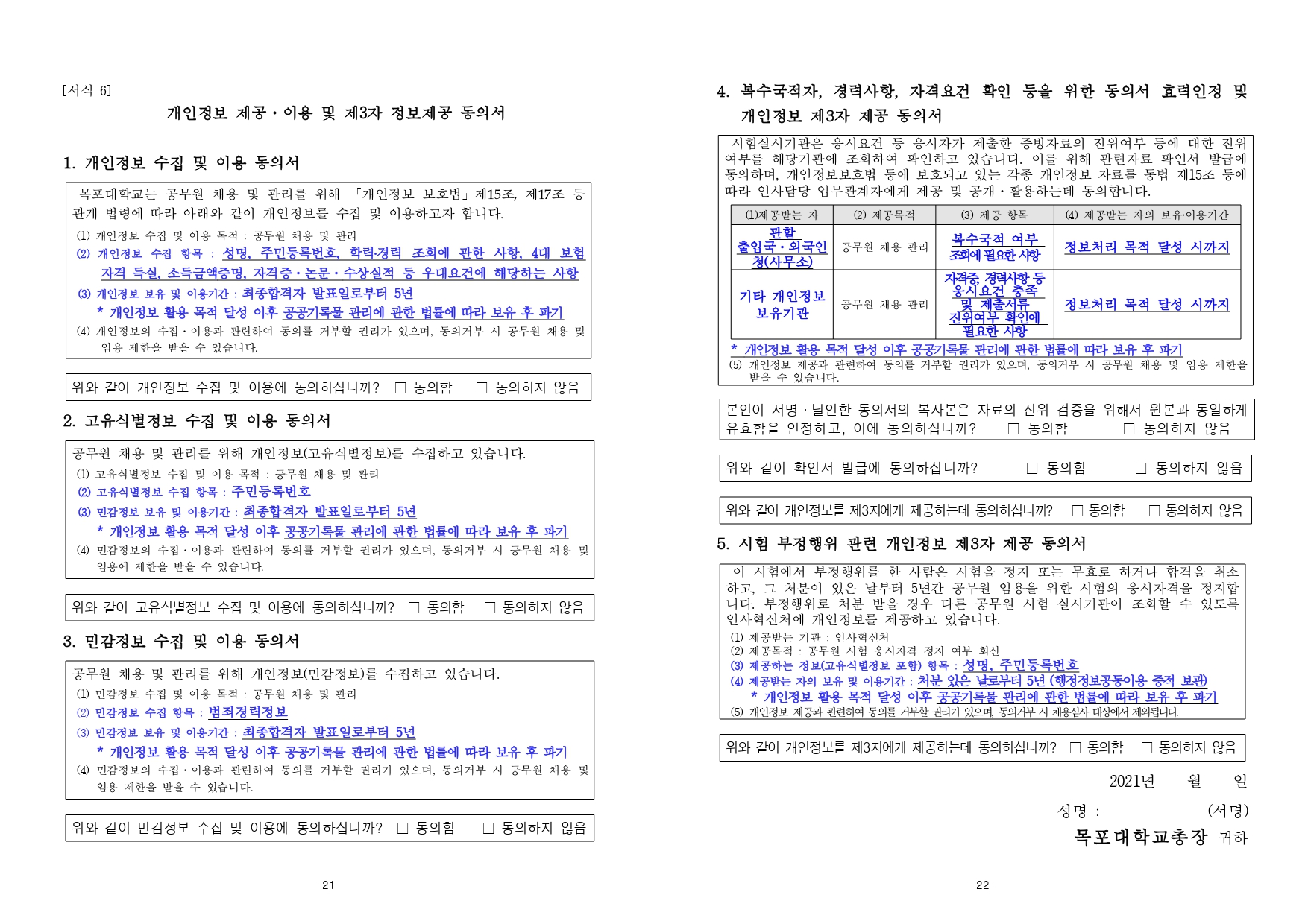 2021년도 제2회 목포대학교 국가공무원 경력경쟁채용시험 공고입니다.