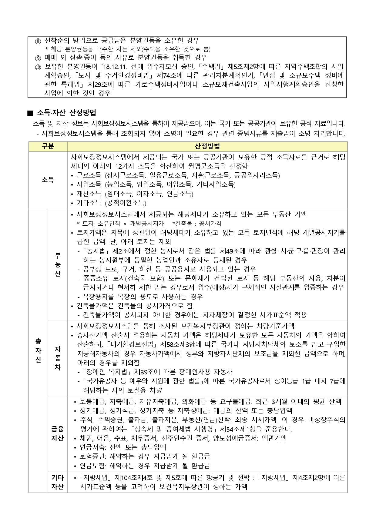 - 한부모가족 : 만6세이하 자녀를 둔 한부모인 사람