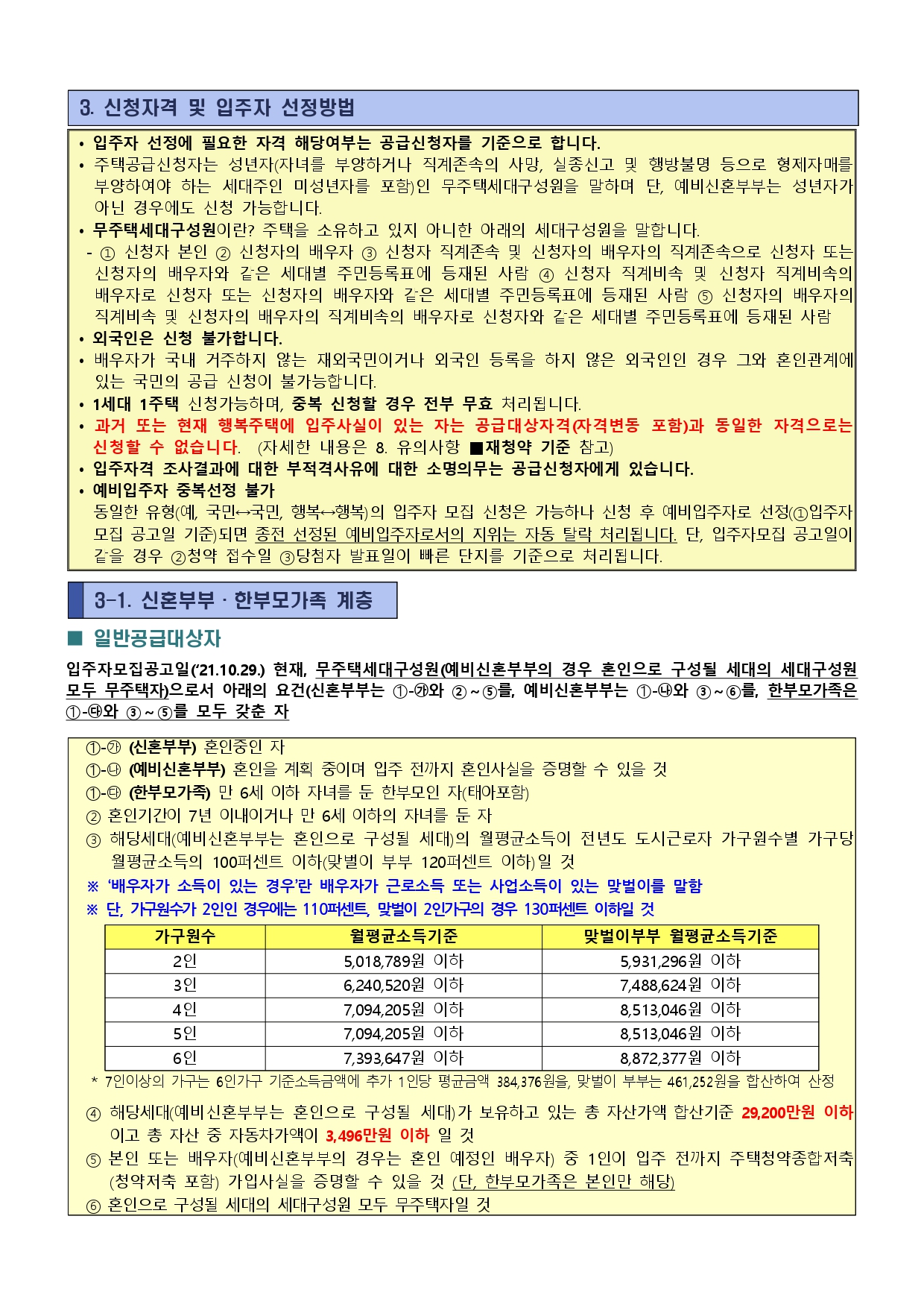 - 신혼부부 : 공고일 현재 혼인중이며 혼인기간이 7년 이내이거나 만6세 이하의 자녀를 둔 사람 - 예비신혼부부 : 입주 전까지 혼인사실을 증명할 수 있는 사람