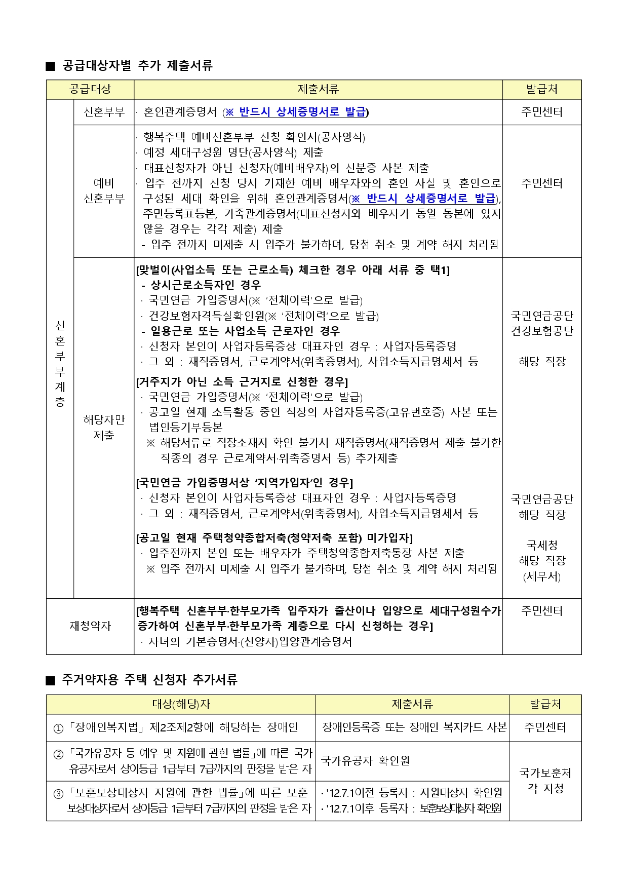 - 신혼부부 : 공고일 현재 혼인중이며 혼인기간이 7년 이내이거나 만6세 이하의 자녀를 둔 사람 - 예비신혼부부 : 입주 전까지 혼인사실을 증명할 수 있는 사람
