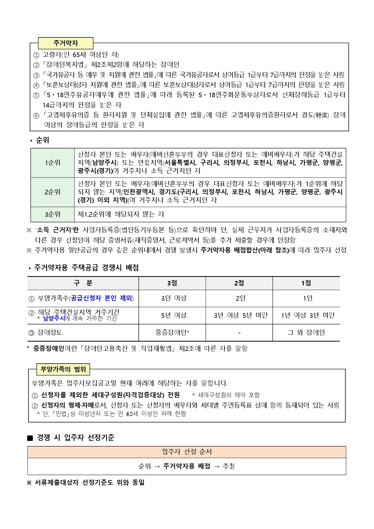 - 한부모가족 : 만6세이하 자녀를 둔 한부모인 사람