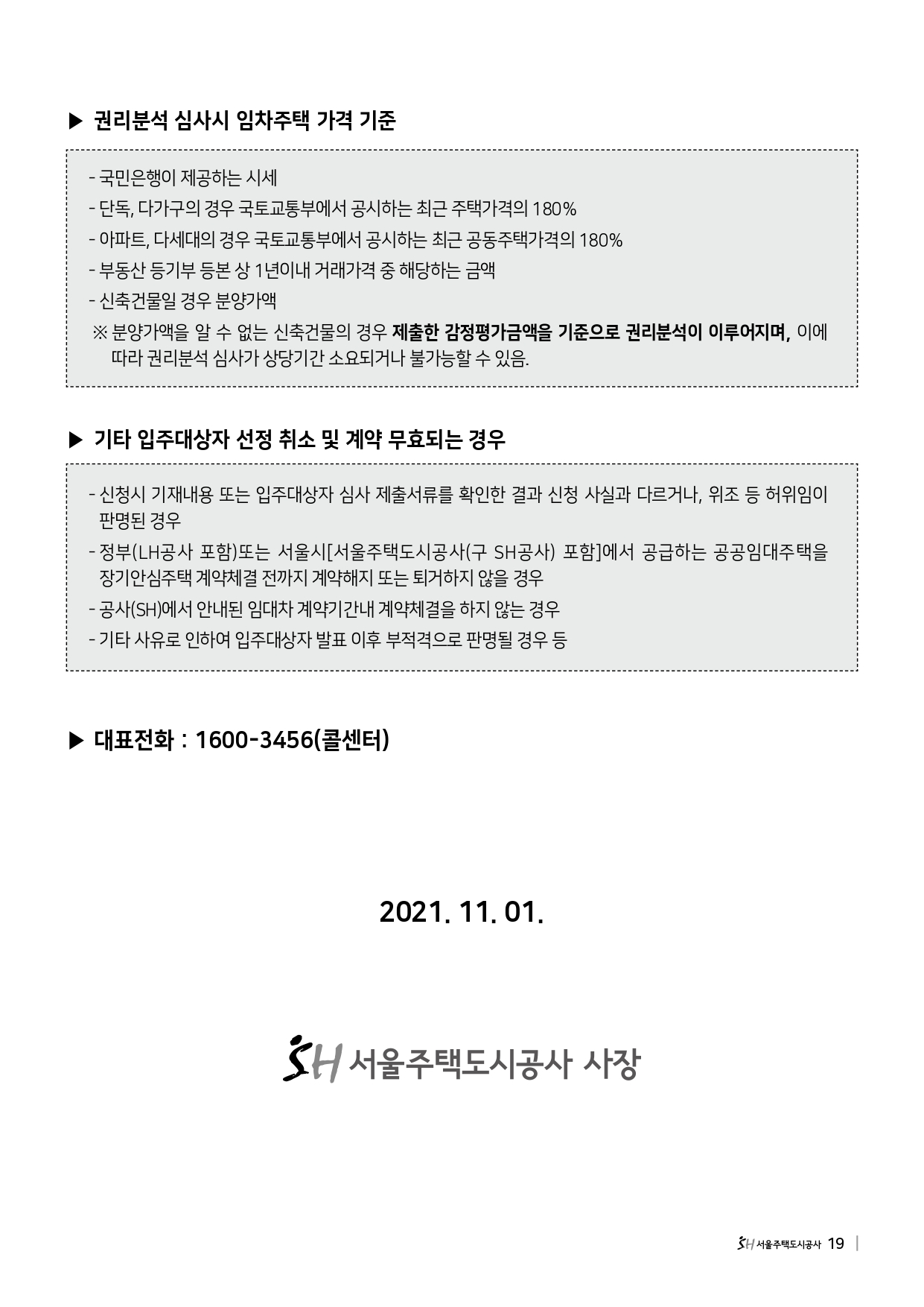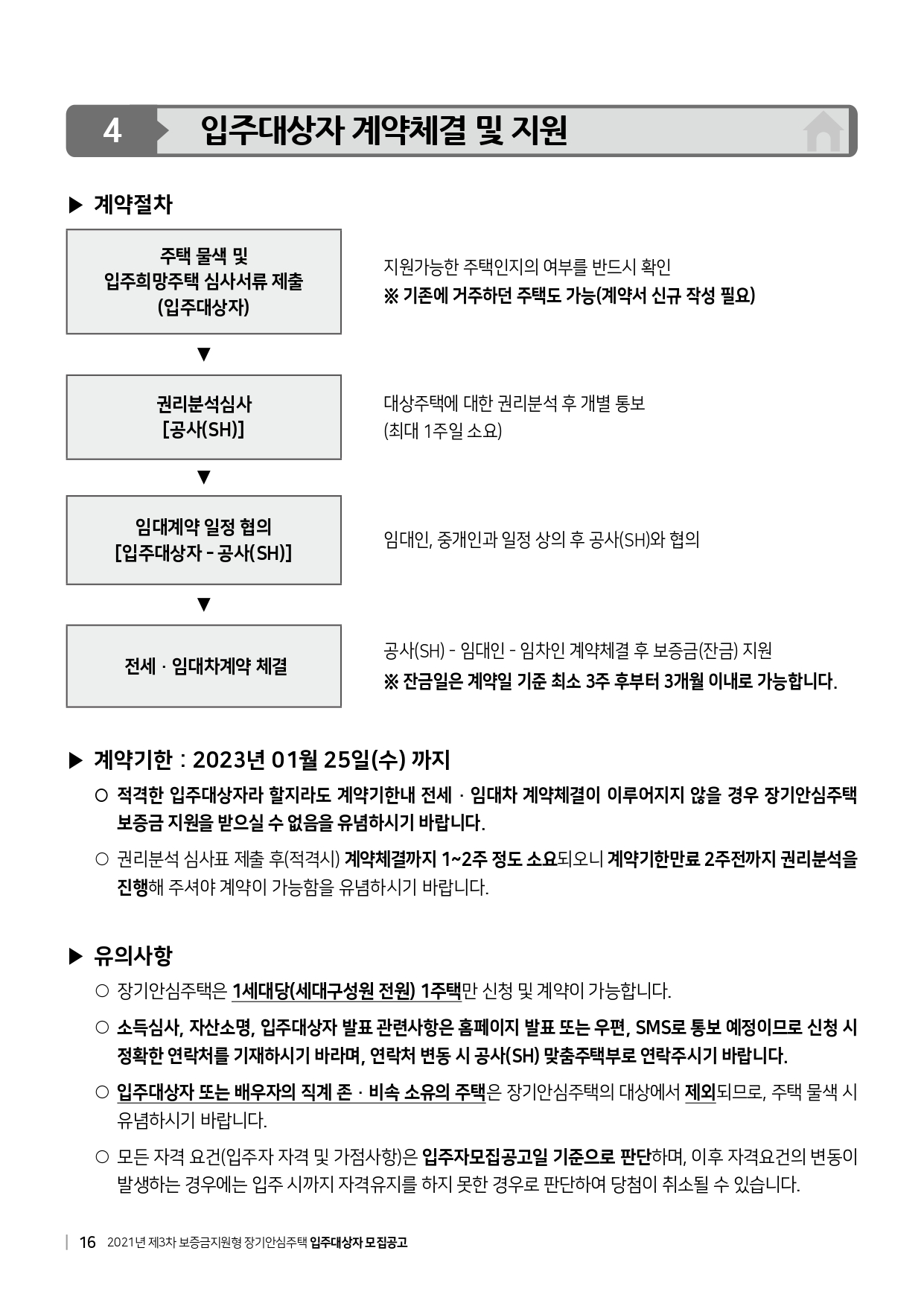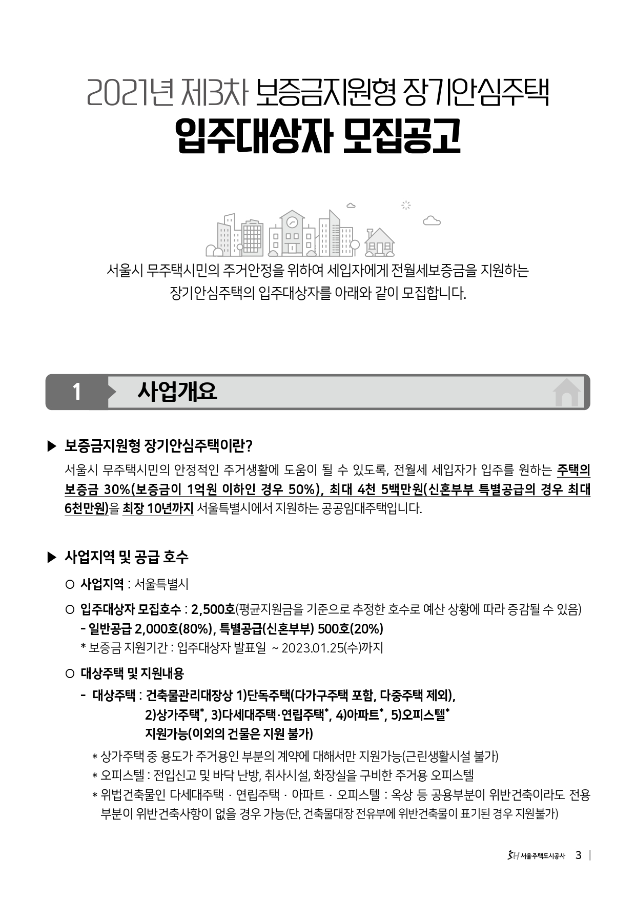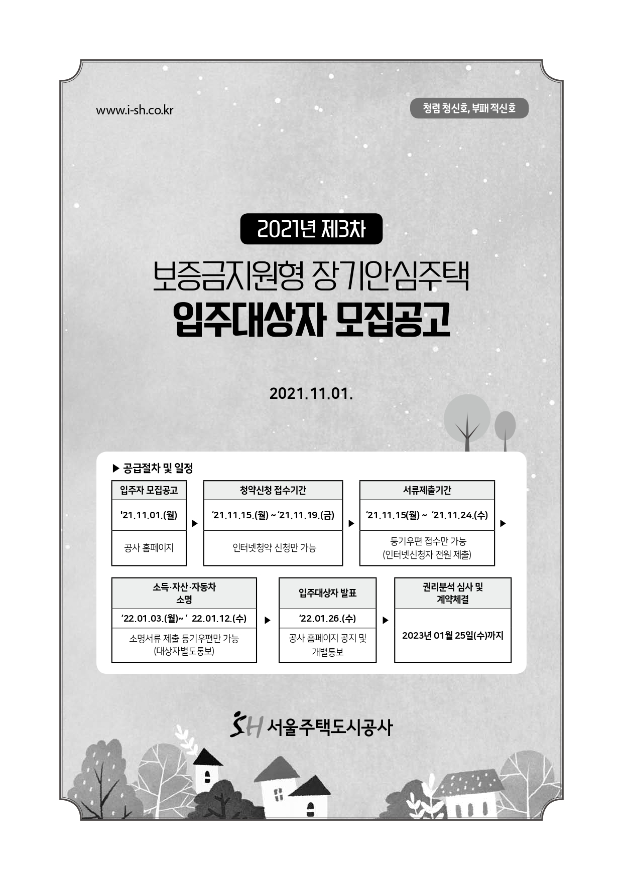 2021년 제3차 보증금지원형 장기안심주택 입주대상자 모집공고(2021.11.1) 입니다.