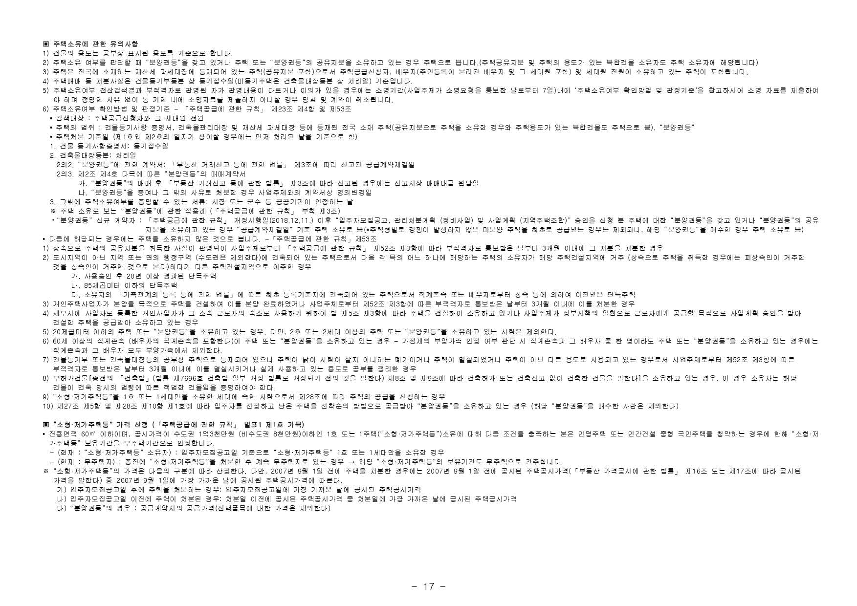 - 관한 규칙」에 따라 1주택 이상 소유한 세대에 속한 분은 1순위 가점제 청약이 불가하며, 2주택 이상 소유한 세대에 속한 분은 1순위 자격에서 제외됩니다.(무주택 세대 또는 1주택을 소유한 세대에 속한 분만 1순위 청약 가능)