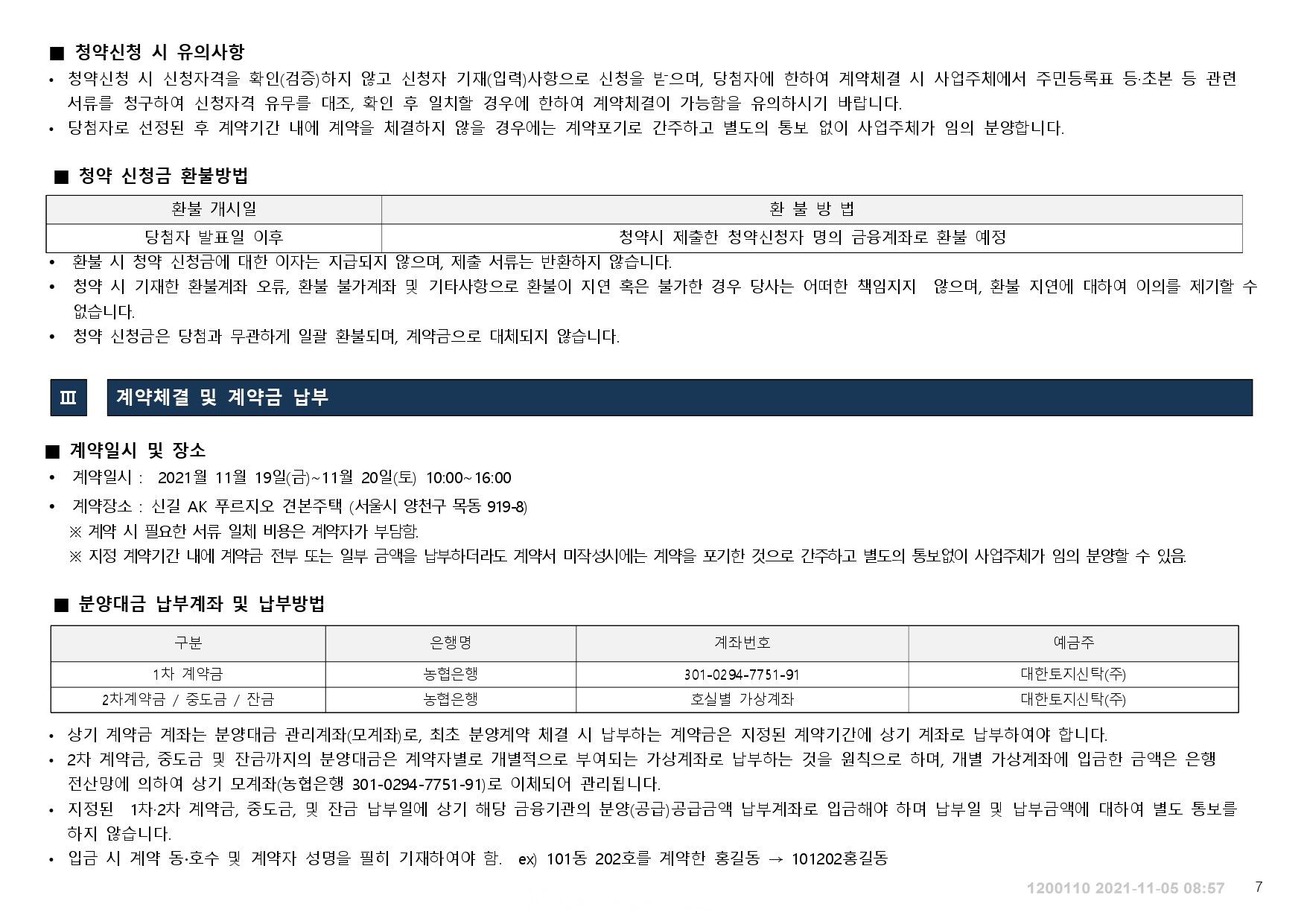 ■ 청약 신청한 공동주택의 신청취소는 신청 당일 청약접수 마감 이전까지 가능하며 청약 접수 종료 이후에는 어떠한 경우라도 신청 취소 및 변경이 불가하오니 유의하여주시기 바랍니다 .
