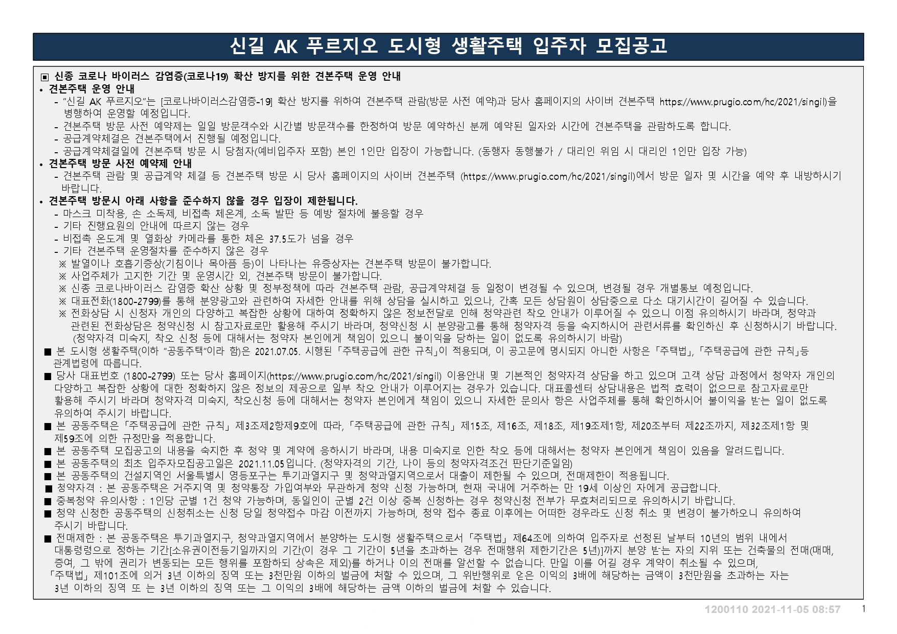 | 2021년 제3차 보증금지원형 장기안심주택 입주대상자 모집공고(2021.11.1) (0) | 2021.11.02 |