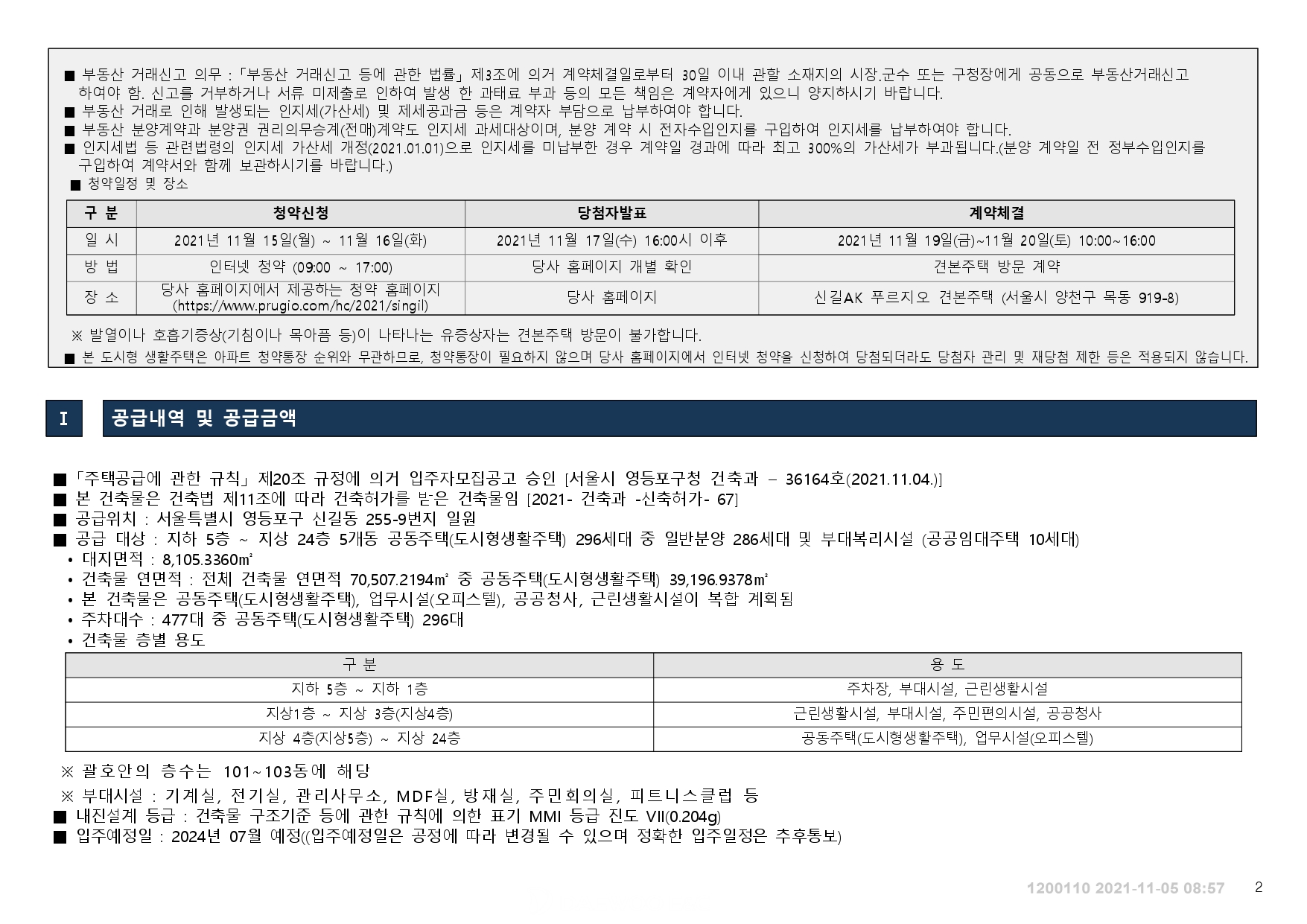 신길 AK 푸르지오 도시형 생활주택 입주자 모집공고(21.11.5)입니다.
