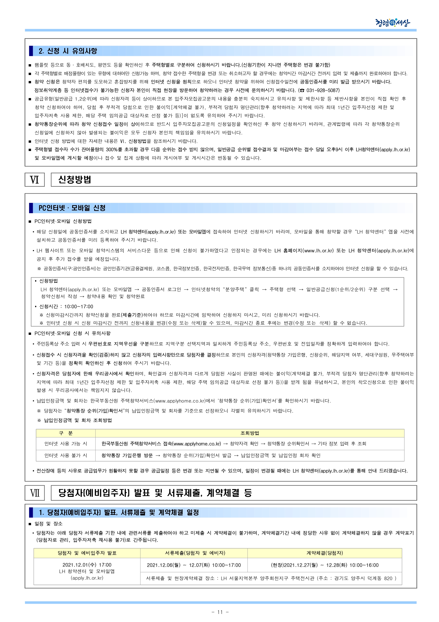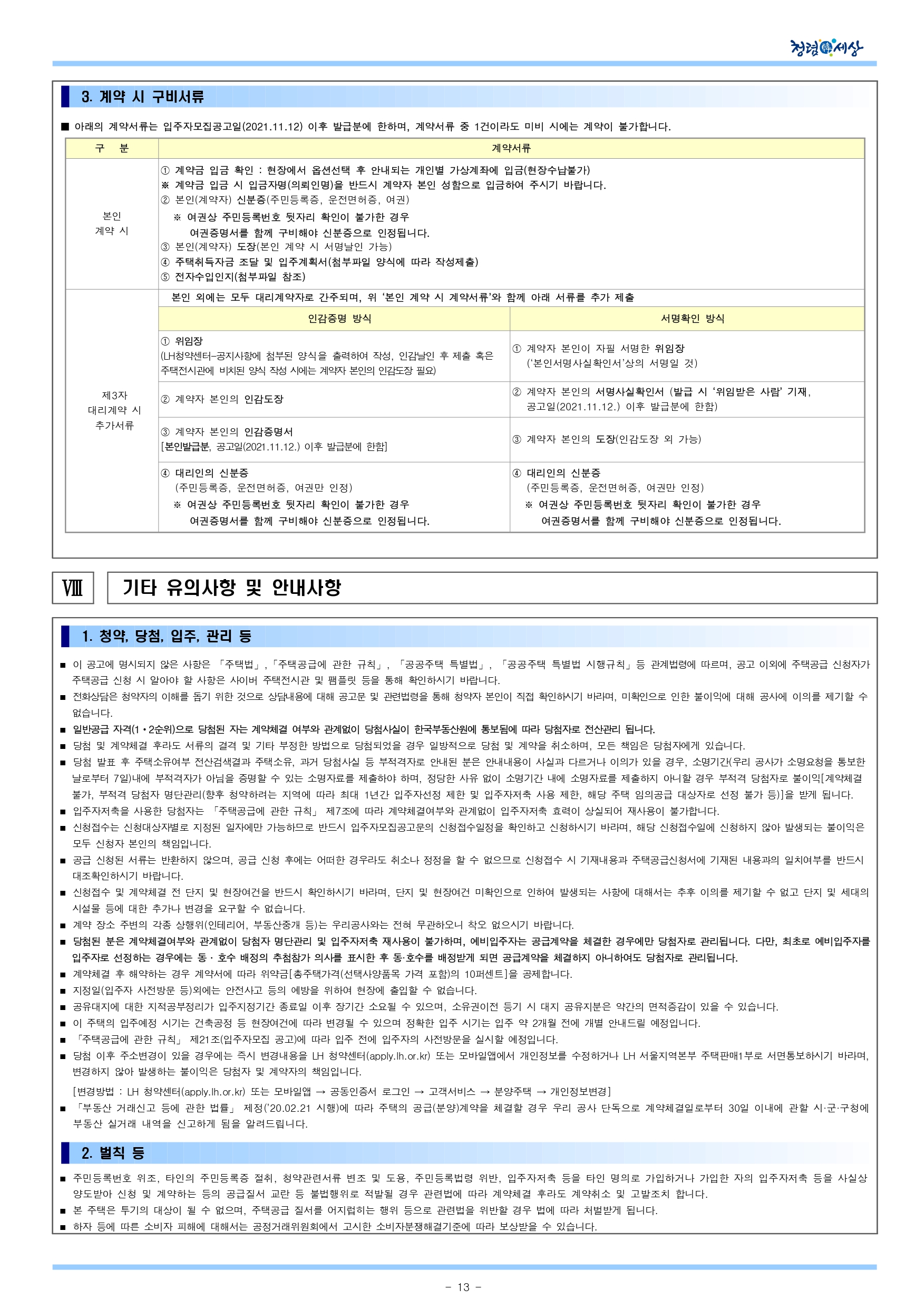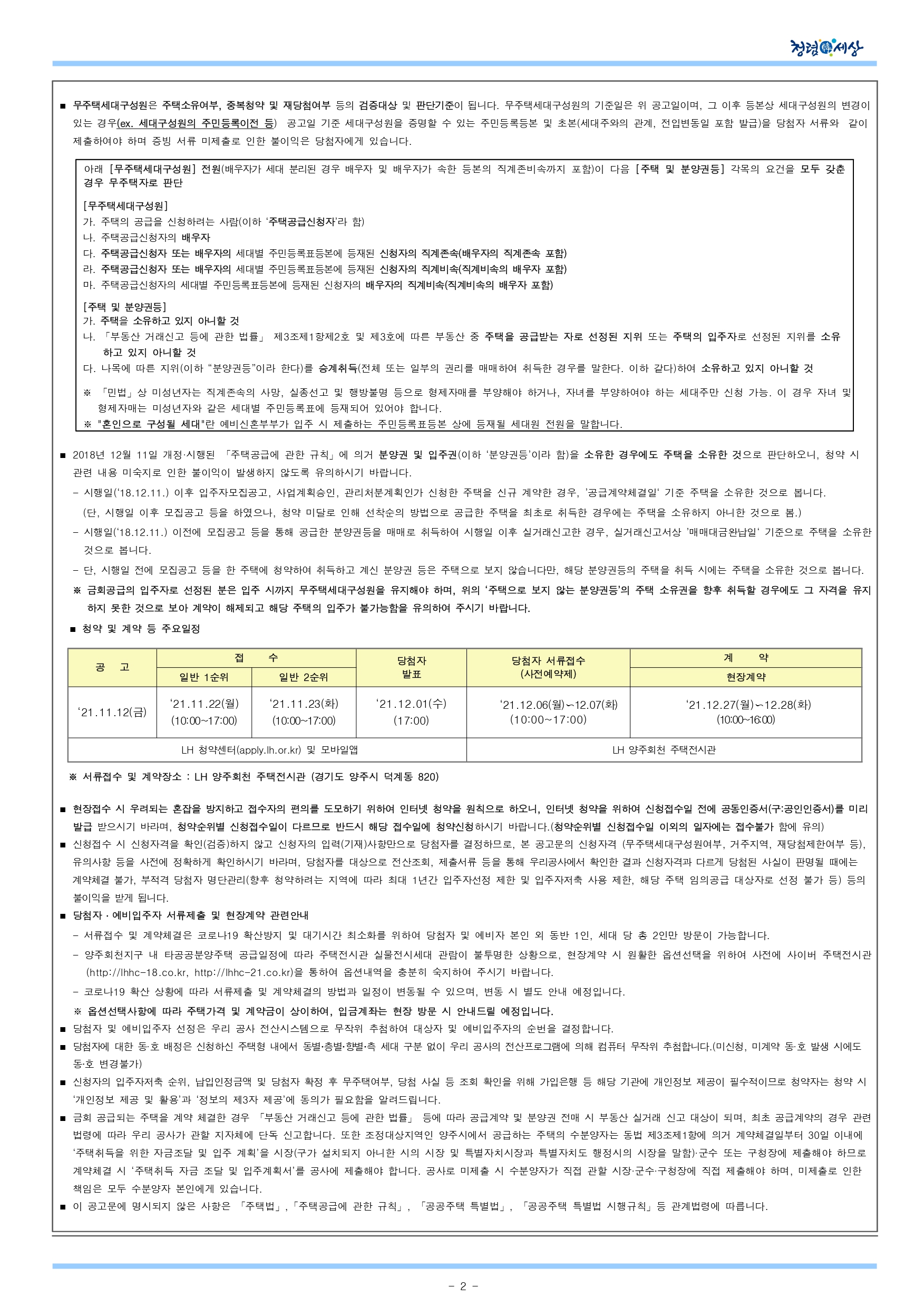 ◼ 신청접수는 당첨자발표일이 동일한 주택 전체에 대해 1세대 내 무주택세대구성원 중 1인만 신청가능하며, 1인 2건 이상 청약신청 할 경우 모두 무효처리 됩니다.