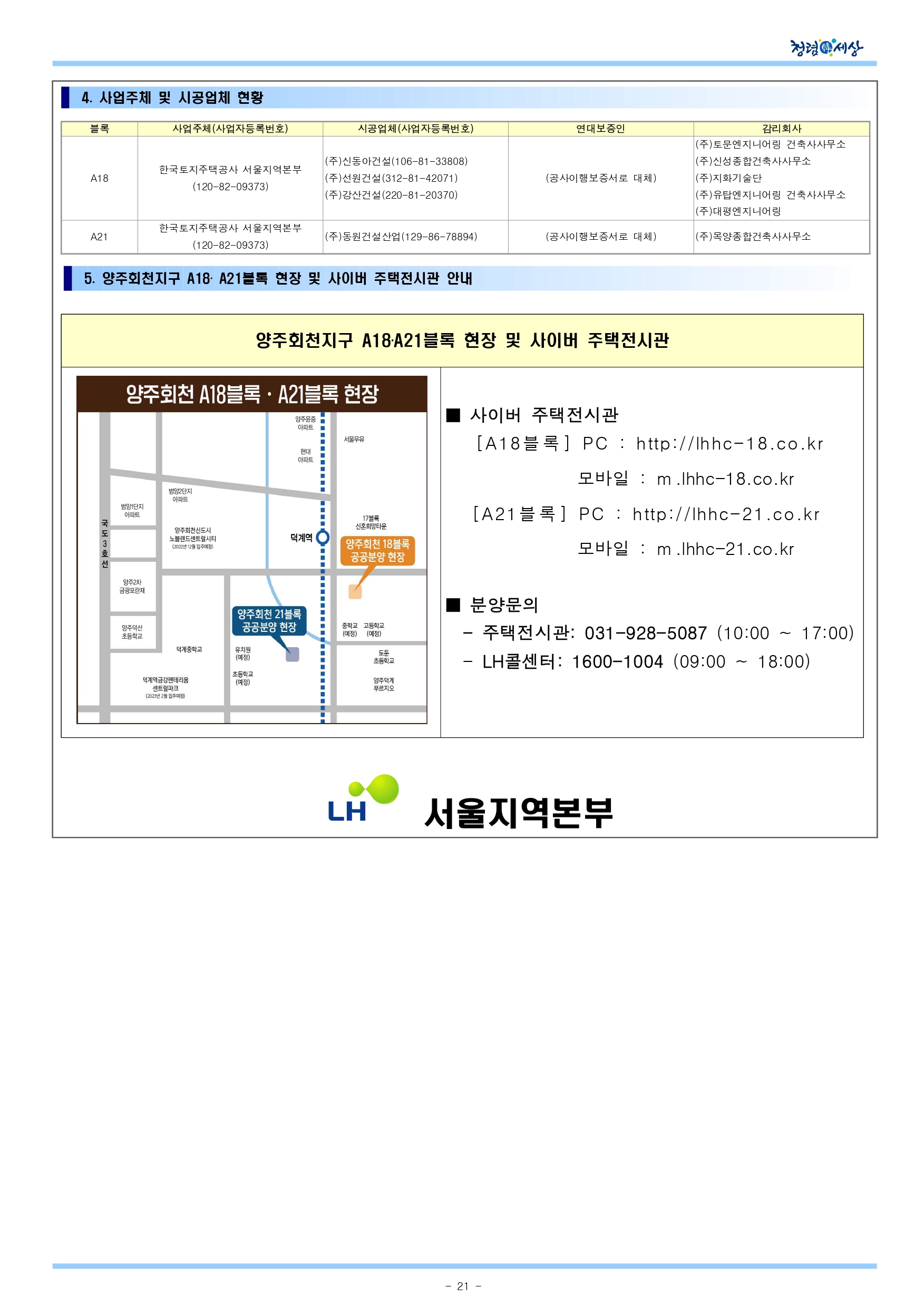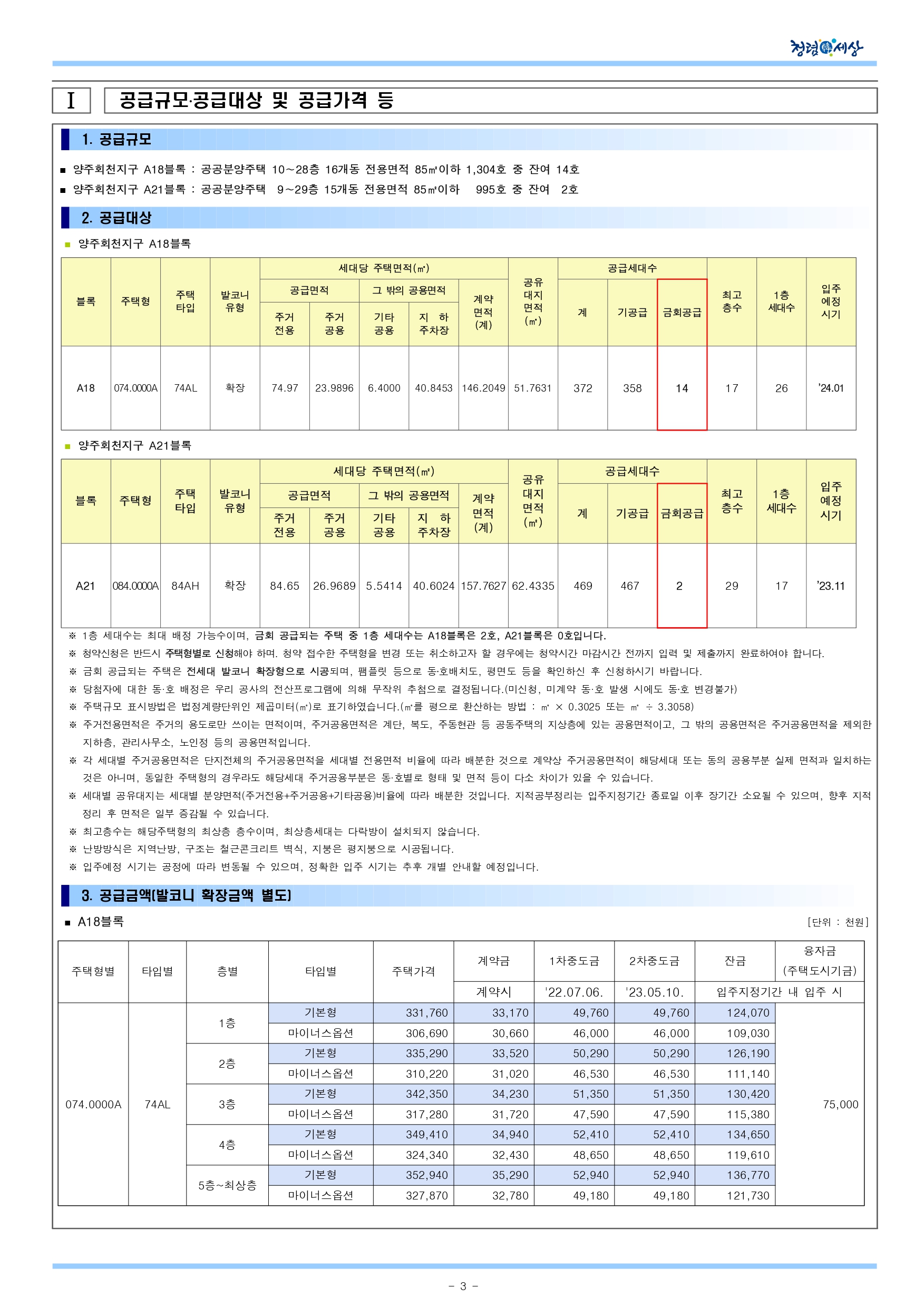양주회천지구 A18, A21블록 공공분양주택 잔여세대 입주자 모집공고입니다.